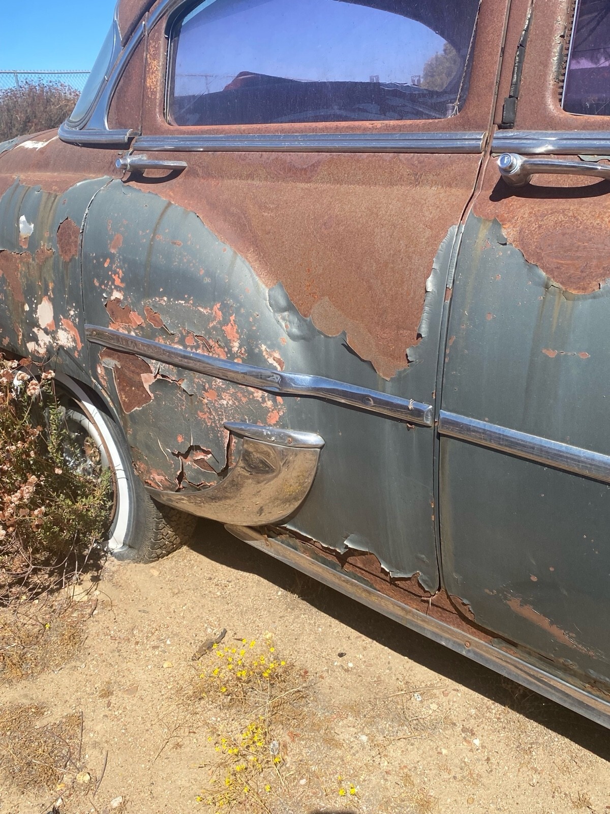A Super Solid Car, rear outside wheel fender area needs a bit work (see photos) beside that cars solid. Engine turns & was fired up awhile back. Some glass missing, broken or chips.