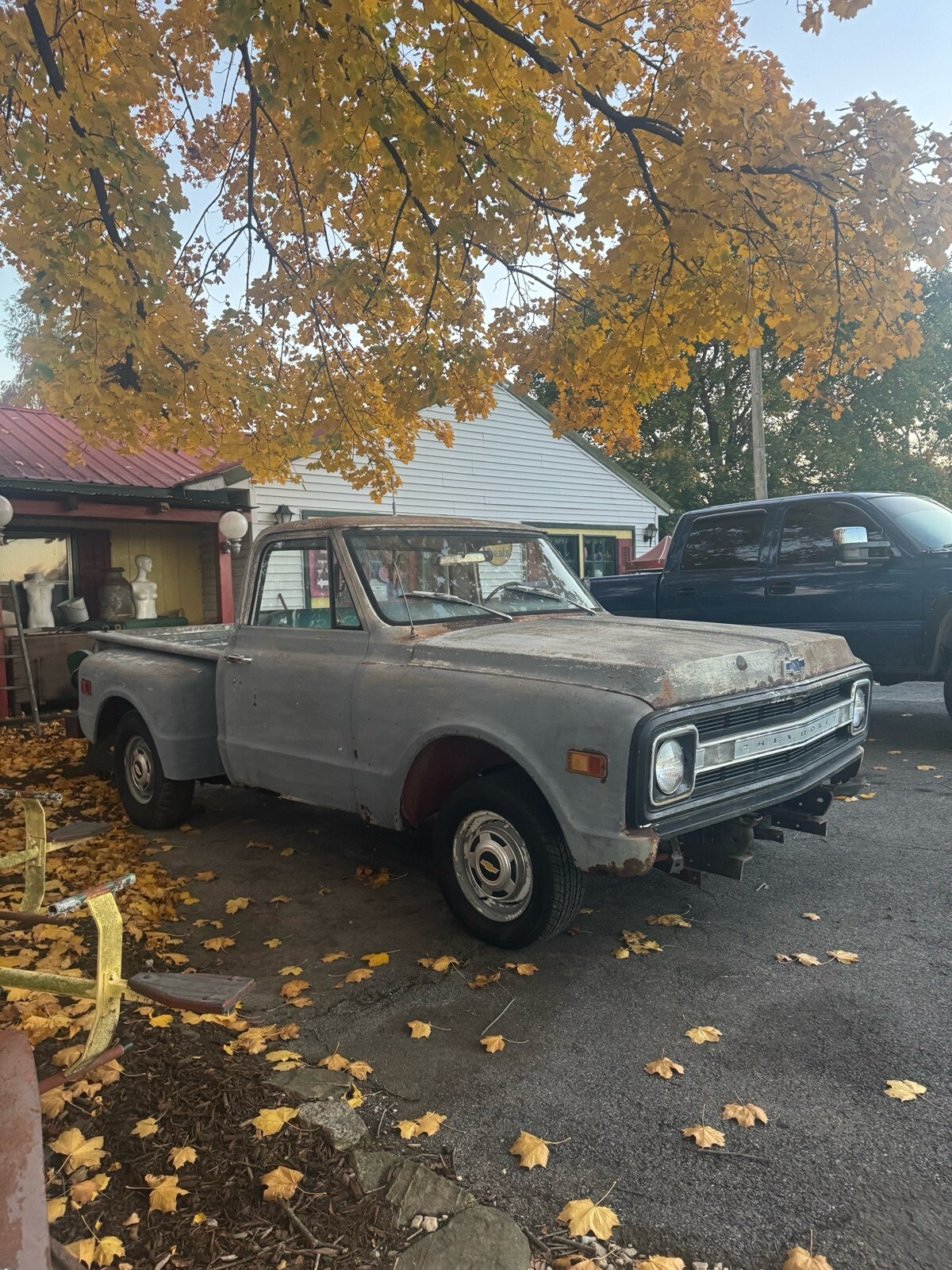 1970 Chevy step side truc, Truck does run and driv, No Breaks needs Master Cylinder. Needs complete restoration, Nice Starter Project Truck . Bed boards are rotten but there still. Frame is fine . Needs rockers may need lots of other stuff.