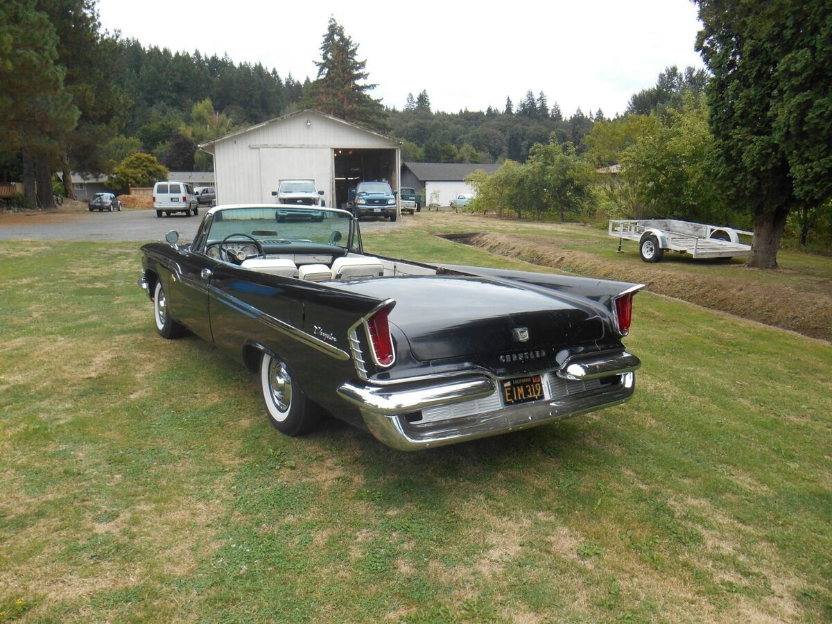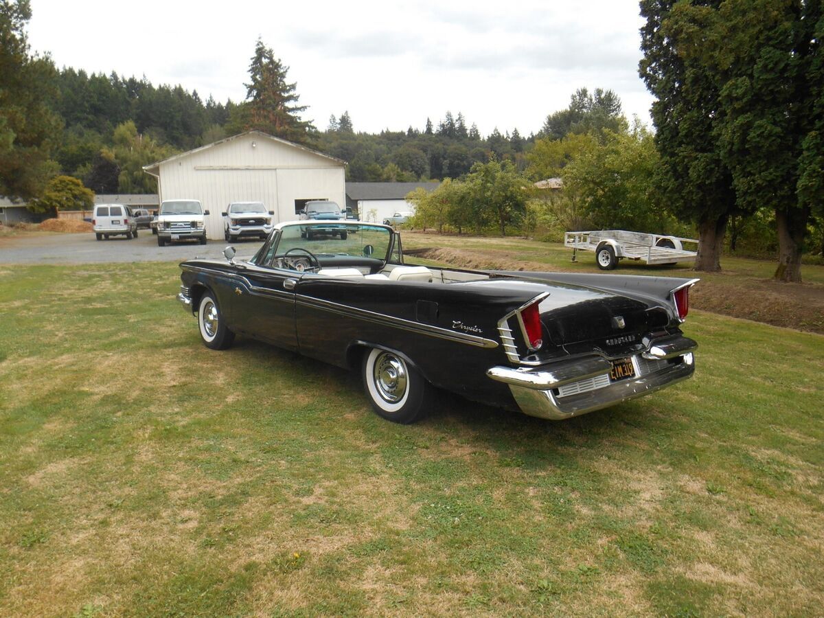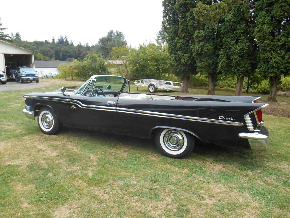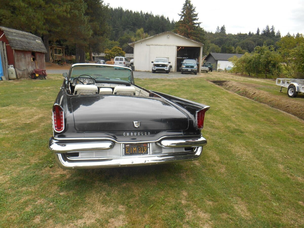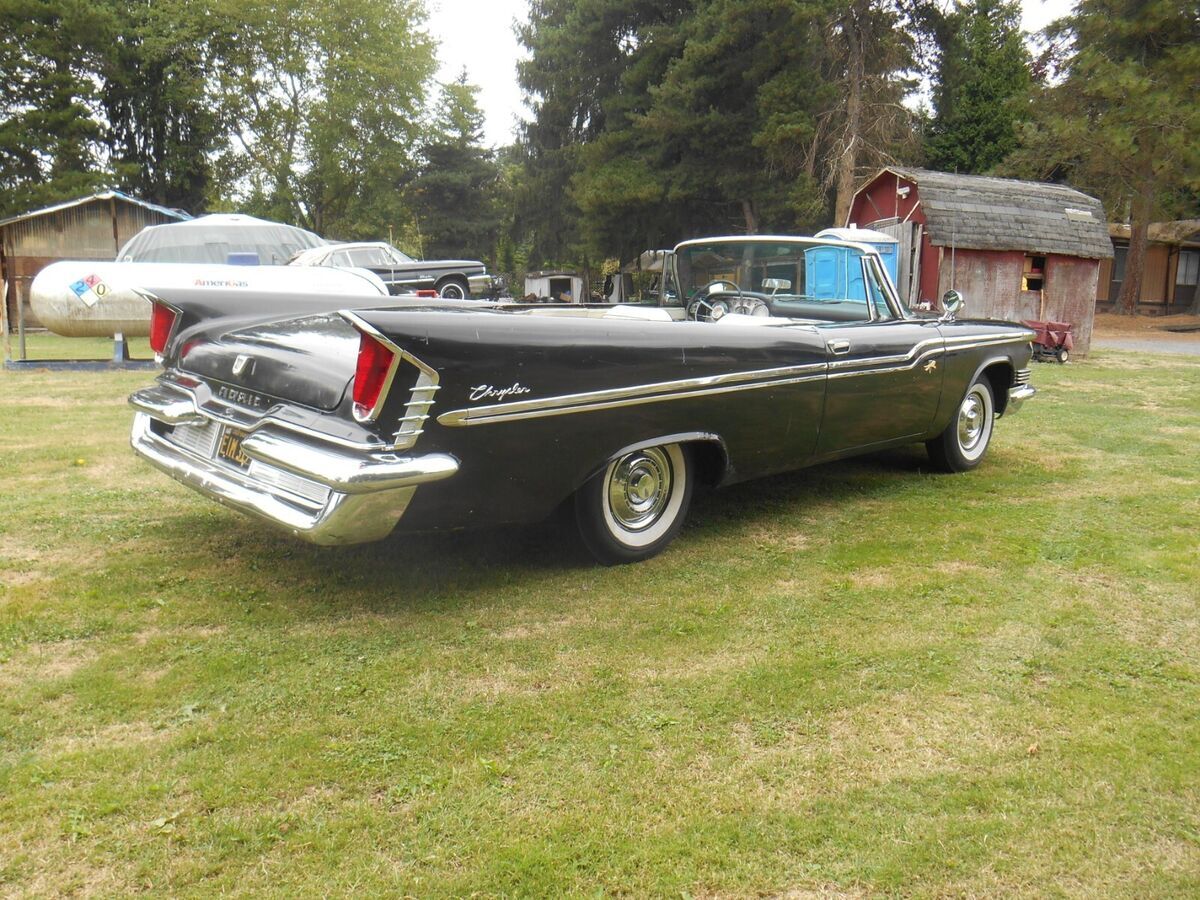 selling a 1959 Chrysler Windsor convertible in good used running and driving condition......factory black with white leather interior....currently has a 413 4bbl engine out of a 59 New Yorker in it which runs great ( I have the original RB 383 engine that was in it but it was stuck) this car is loaded with options....power leather swivel seats, power windows, power steering, power brakes, dual mirrors, clock, tinted glass, heavy duty suspension with 3.23 sure grip, and factory gasoline heater, etc......car is missing convertible top and upper back seat and window regulators...the way I found it....some rust paint is fair but a very rare car.....everything works on car including all gauges and radio...runs and drives real nice...brand new dual exhaust, brakes, tires, etc.....bubble windshield is perfect.....great project this spring for summer fun......I drove it daily for last couple of summers and it handles and drives great...........I have a lot of extra 59 parts for the car including grille, bumpers, tail lights,etc....ALSO comes with a 59 Windsor 4 door hardtop parts car if someone wants it that I used for parts to help get convert back on the road and is mostly complete....not too many of these 59 convertibles left as kind of a rare car.....sold as is...prefer bank wire if car sells...... thank you... If ANY QUESTIONS............ 425 219 3663