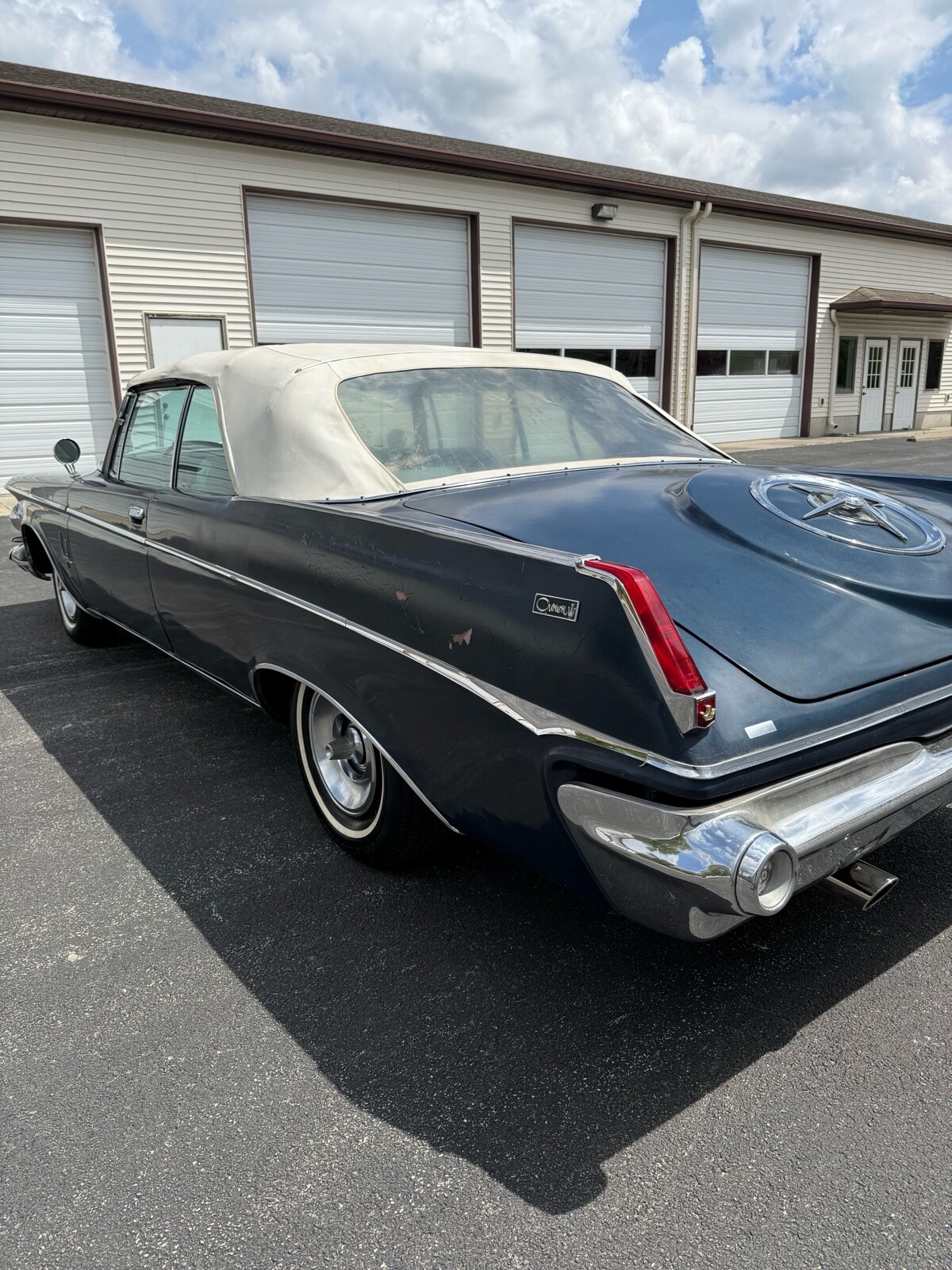 1963 Chrysler Imperial Crown Convertible. Only 531 Built. 413 V-8 with 3 speed push button automatic transmission. Very complete and original car. New battery, gas tank, front and rear brakes, and a dual exhaust. Tires are decent but are dated and should be replaced. Car runs and drives good. Solid body but does have some imperfections as seen in the pictures. Paint is dull and the passenger side quarter has been sanded, as seen in pictures. Fuel gauge does not work and also the power top has to be operated manually. Owned for 18 years. Very rare car that can be enjoyed as is or restored. Clean Indiana title. Call Bob with any questions, 219-741-3661.