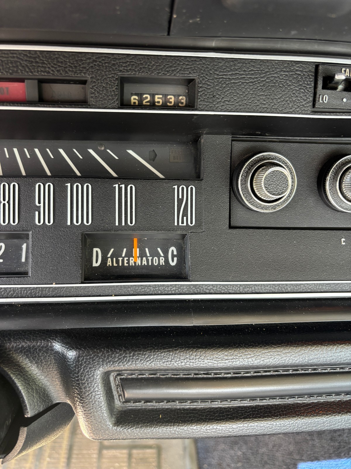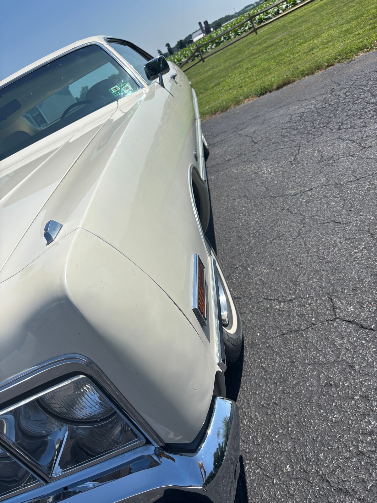 Front vertical bumperettes were removed and are in the trunk. (The 2 bolt holes in fender were covered with bolts.)