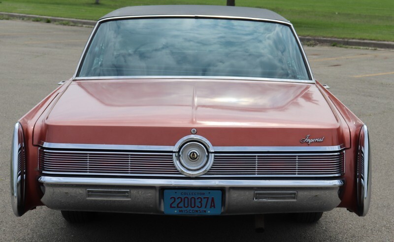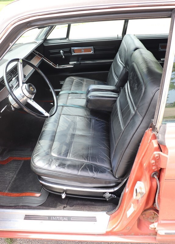 1967 Imperial Crown four door.Turbine Bronze - Black vinyl top - black leather interior440 engineStarts easy and runs well, has exhaust header leakRear quarter panel has been repainted due to crash many years agoPreviously titled in WashingtonA/C is NOT workingRadio powers up, but no soundElectric antenna worksALL 5 lighters workRear driver side window motor not operatingTurn signal arm does not stay down by itselfCan be seen and driven in Green Bay WII'll consider driving it to buyer, if you pay expenses