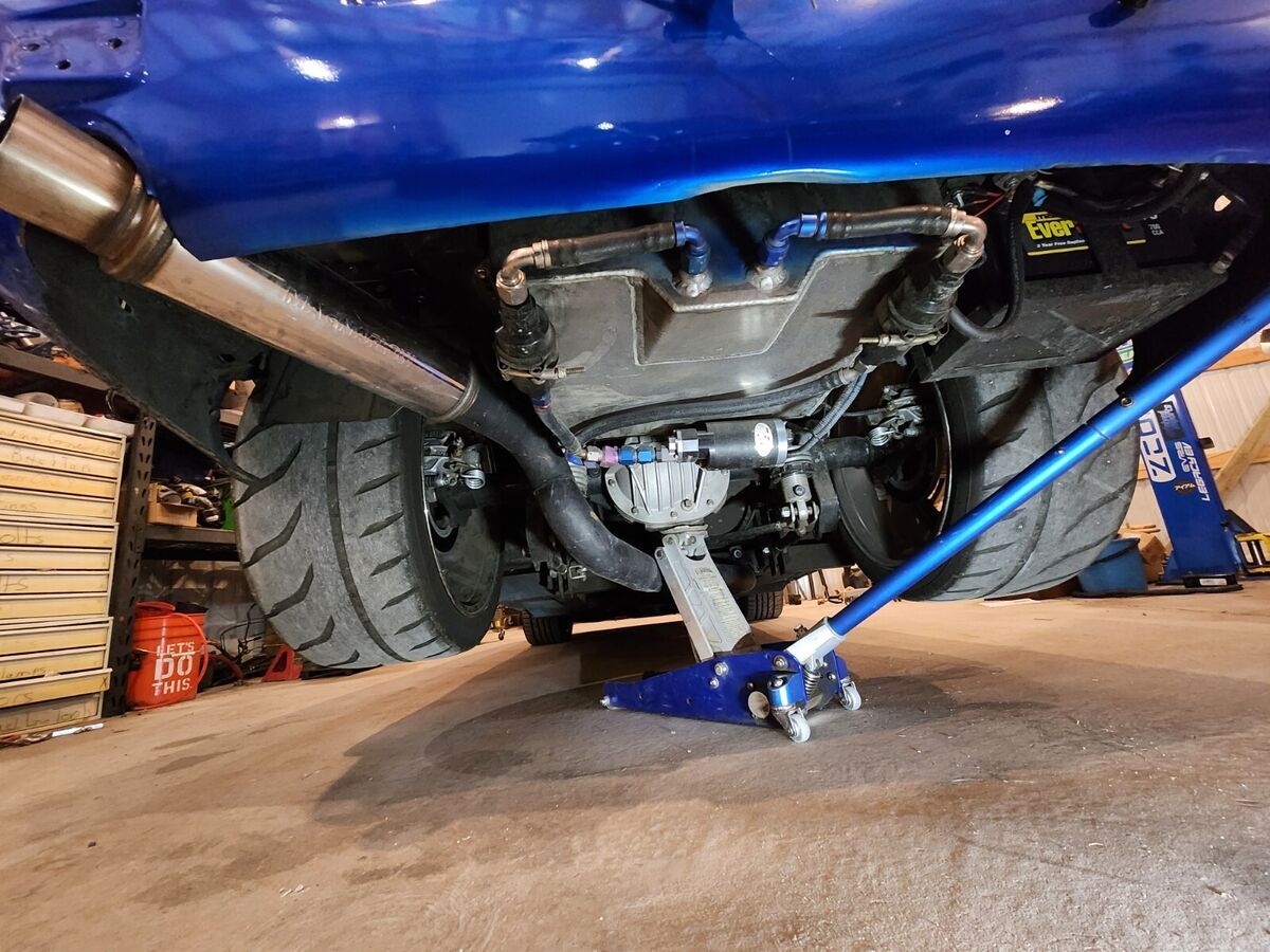 Fuel system: 2150cc injectors, flex fuel kit, Magnafuel 750 pump, twin large serviceable filters, Fuel lab regulator, 10 gallon fuel cell under rear trunk floor.