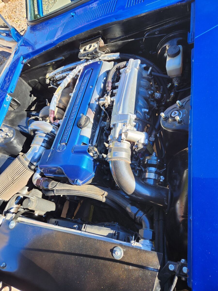 Motor: 2JZGTE VVTI 1k miles on motor after refresh with new bearings and rings, BC 276 cams with BC valve springs with rebuilt head, Big single turbo kit with BorgWarner s369 turbo, Precision Wastegate (10psi) 3port boost solenoid (see Tech below). Lots of powder coated parts – Valve covers, Intake manifold, intercooler piping, Compressor Housing. The turbine and downpipe are Cerakoted. 4 inch down pipe leads to 3inch exhaust to Magnaflow Muffler. 4 Inch intercooler with very large radiator. Cooling is great on this car.