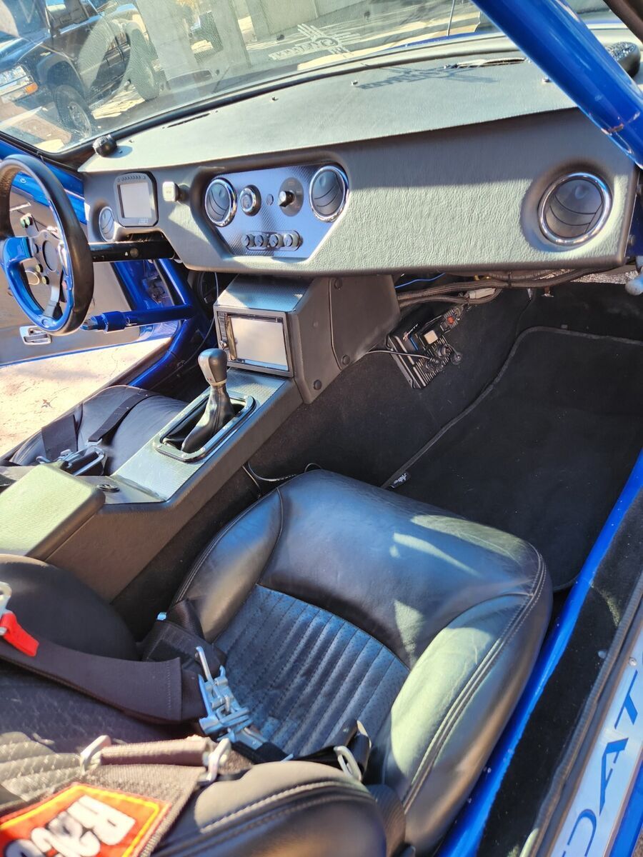Interior: Custom dash and center console are handmade and wrapped in leather (see photos), Skillard Datsun inner trunk lid beauty panel, Skillard Datsun door sill plates, C5 Z06 seats, Vintage Air Mini Gen2 A/c, paint matched steering wheel. Center of the dash is the mode switch so you can pick how wild you want your ride to be. Leather shift boot with genuine R34 GTR Shift nob.