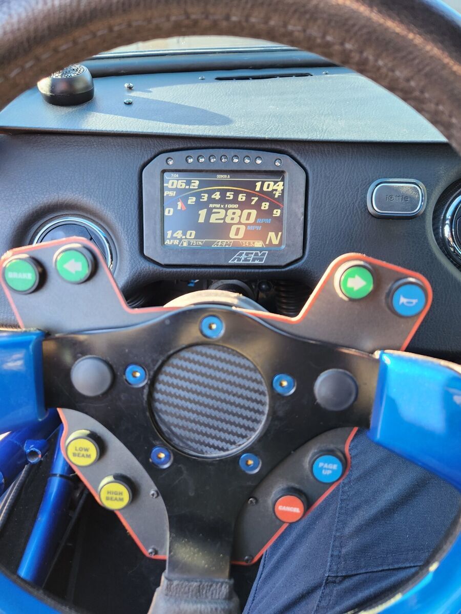 Technology: AEM Infinity engine management with oil pressure, lean, and over boost protection, Boost by (gear/ethanol/mode switch/traction). Aem CD5 dash to watch all the vitals. Wheel speed sensor front and drive shaft speed rear for traction control (also mapped of mode switch). Drive By wire with Tarkk adapter and Bosch Throttle body (torque mapped off mode switch). Cartek wireless steering wheel 8 button system which controls: headlights, turn signals, cd5 dash controls, line lock. Push start keyless entry system with 2 fobs but one physical key. Key is to trunk lid. Door locks are blanked out.