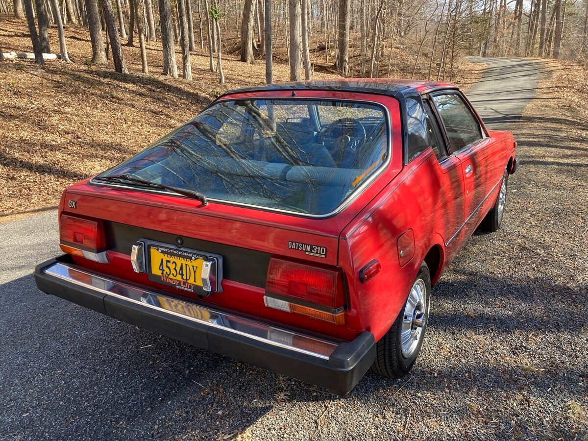 Collector owned. This may be one of the nicest remaining Datsun 310's in the states and was acquired from long term storage in a large private Japanese car collection. The GX was the top of the line 310 in 1981... and was Datsun's economical FWD sporty coupe. It was also the first year that Datsun transitioned to the square front headlight design.*Note: All photos taken March 8, 2025Starts up, idles, runs and drives like a 45k mile car. 5-speed manual transmission. All the glass is excellent. All chrome is very good with a few very small spots of pitting on the top of the passenger side front bumper. Windows all roll up and down as they should. Typical small scratches but presents very nicely.Interior: Excellent and all original gray cloth seats, light gray carpet and original Datsun logo floor mats. Headliner is perfect. Door cards, dash etc are like-new. Original factory radio works. All gauges work. Odometer and trip odometer working.Trunk/cargo area: Spotless spare tire storage underneath clean rear carpet. Cargo cover. Even the cargo light still works. The hatch struts need to be replaced as they will not hold the hatch in the upright/open position.Repaired/Replaced this year (2025):Fresh tune-up, oil change and filternew air filternew thermostat and fresh coolant flushNew front wipers4 New 13 inch tiresrepainted alloy wheels with Datsun wheel capsNew exhaust pipe and new mufflerClean Virginia title in sellers name. This car is garaged in Central Virginia a few miles from Charlottesville airport. Fly in and drive it home, trailer it home or I am happy to assist your shipper.A $500 non-refundable deposit is due immediately and can be paid through Paypal or Zelle. The balance is due within 3 business days by cash in person or wire transfer. No exceptions. Important: Despite Ebay including it on all auto listings, Seller DOES NOT work with or accept Caramel, the new ebay payment system. Contact seller first if you have any questions.