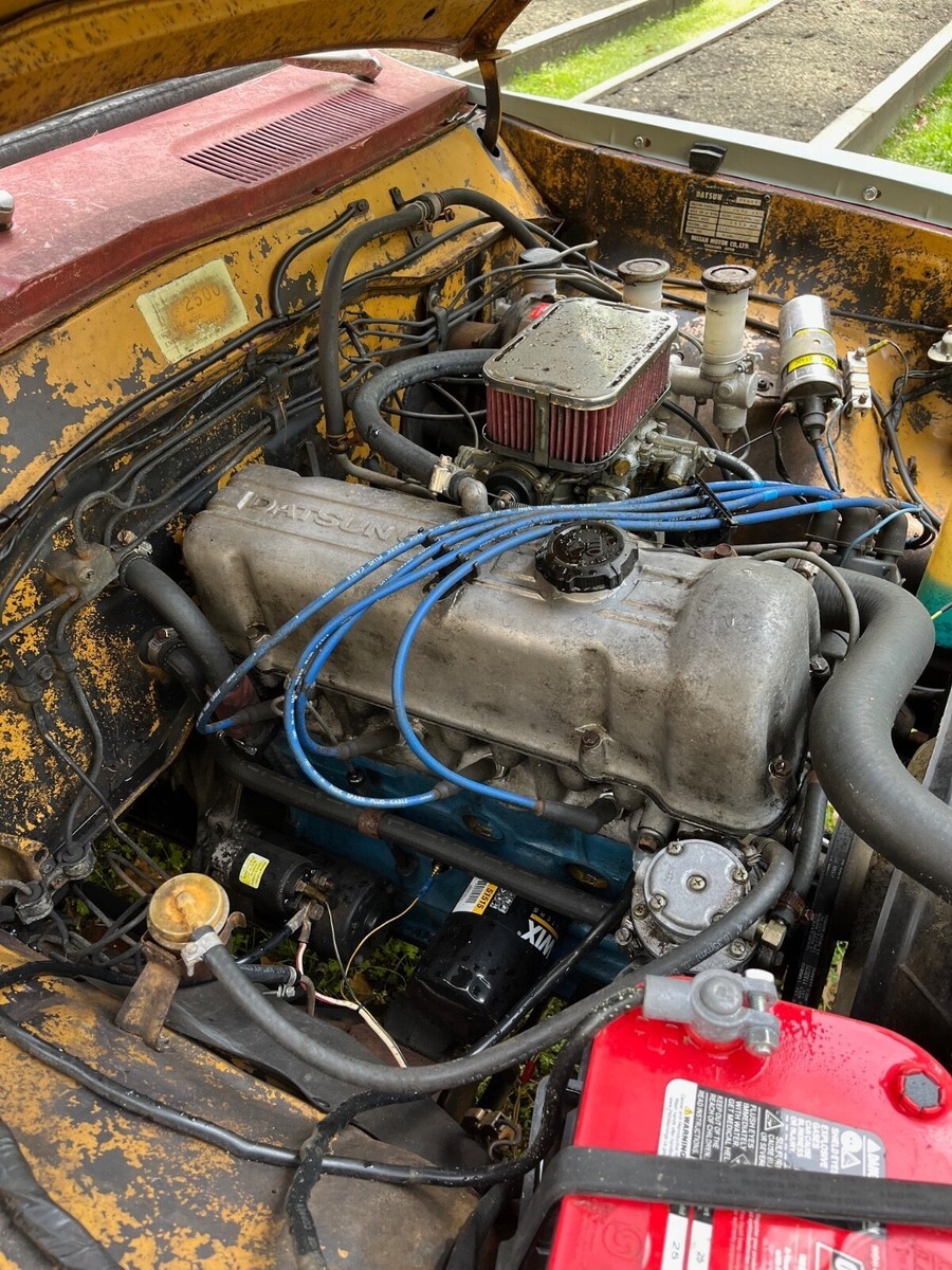 Includes (comes with) a second rebuilt engine, the original truck engine that was taken out. Current rebuilt engine came out of a 510 and runs great. Original, second engine completely rebuilt as described above (rebored at 050 over) with pistons, rings, rods, bearings, etc., but also the head was ported, rod and head used special racing bolts, high output oil pump, has been stored for about 2 years in a temperature- and humidity-controlled space.