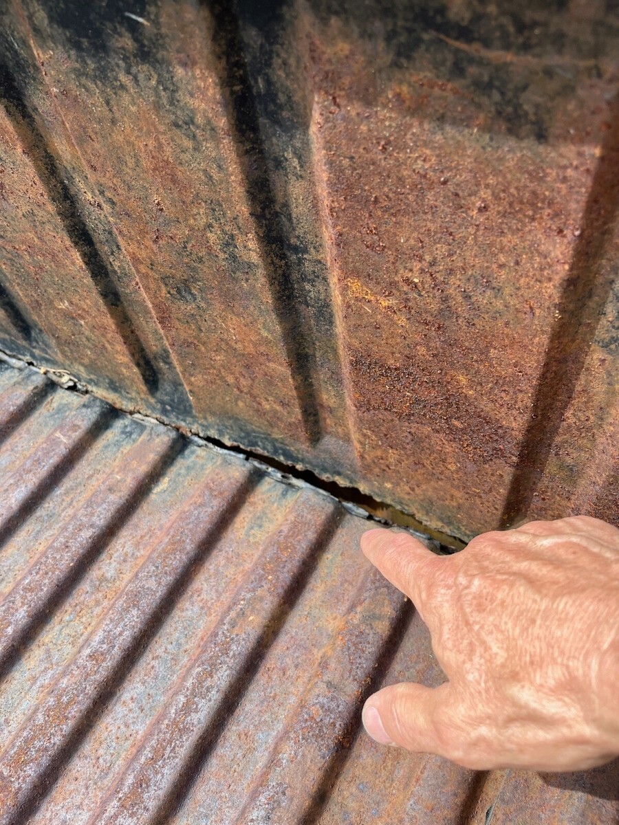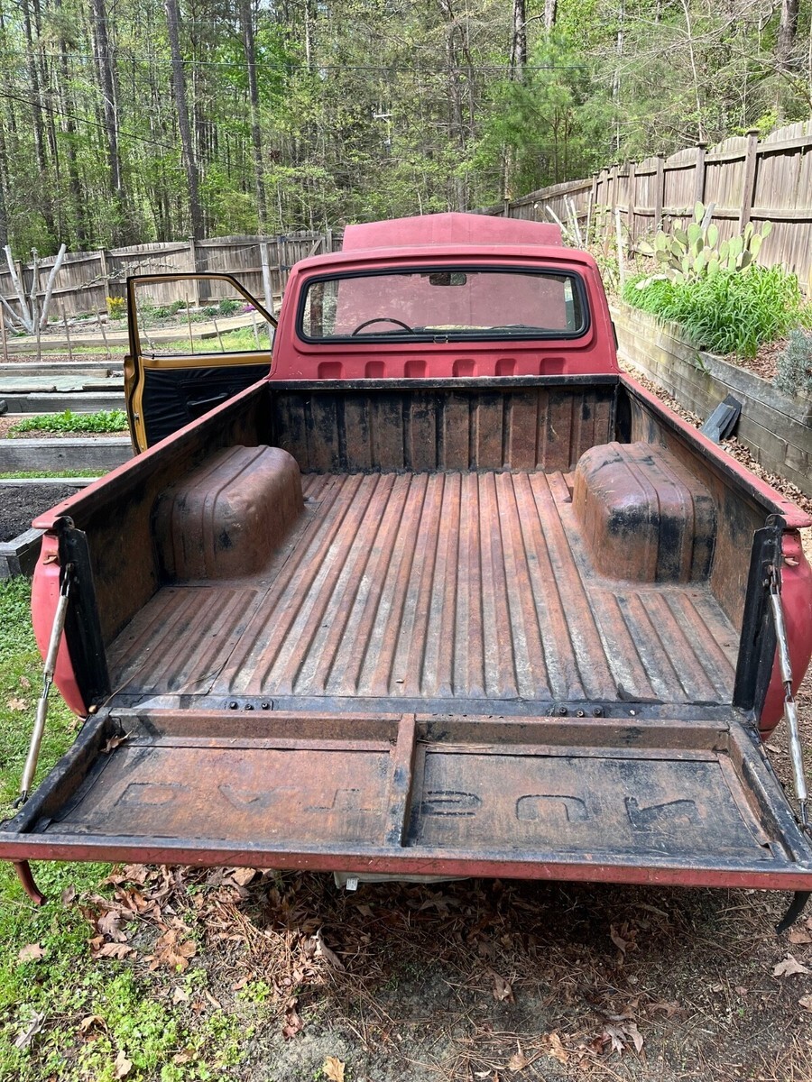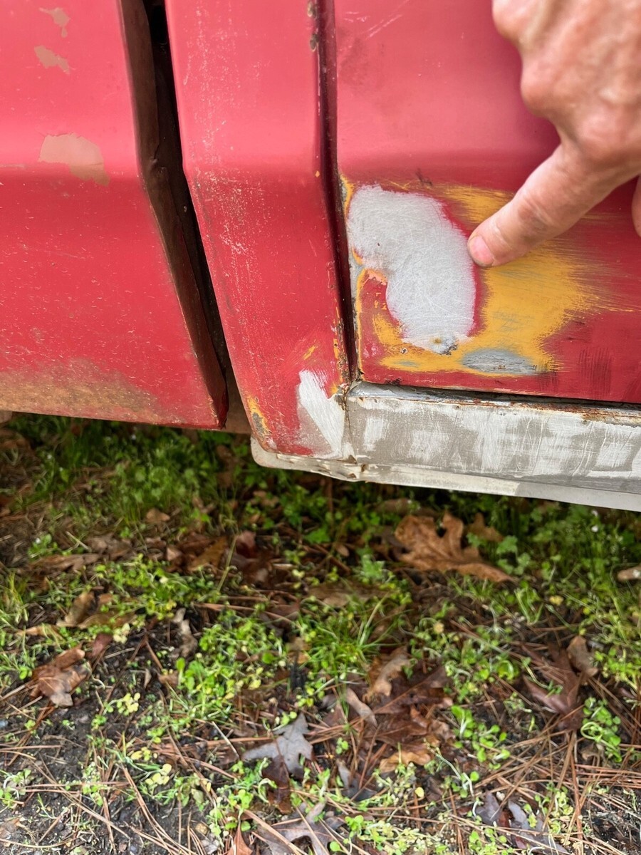 18.Two places with serious rust, passenger door (“fixed” with bondo), passenger side of bed. Bed is otherwise in good shape, original