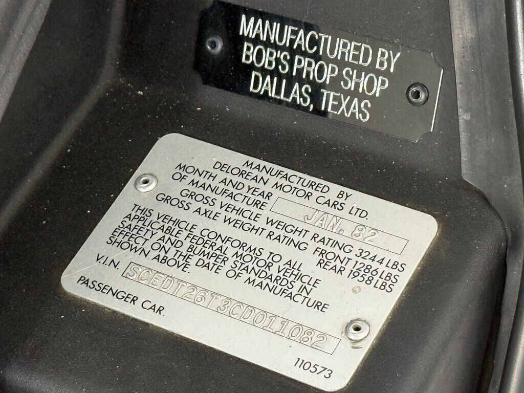 1981 Delorean DMC-12 Time Machine replica by Bob's Prop Shop, Dallas Texas.Original V6 engine with manual 5-speed, all factory options.Includes smoke machine option powered by a 200A Lithium Ion battery system, Xantrex 2000W inverter charger systemwith an AC pass through, allowing you to plug it in and leave it on all the time.Bob's Prop Shop builds premium museum quality replicas of the Time Machine, for theme parks, we built the cars seenon display at Universal Studios Hollywood and Orlando and for many museums and collections worldwide.This replica of the Time Machine is museum quality and ready for yourcollection. It is a fully functional running and driving car with all the sound effects from the film!The "door sounds" when the doors are opened, the "time travel sounds" when the 88 MPH sequence is triggered,the "Plutonium Empty" alarm after traveling through time!It features a demo mode that will ramp the digital speedo up to 88, the Flux Capacitor gets bright, the gauges move, the dates change and it recreates the excitement of time travel!The metal bands on the outside light up bright white just like the one in the movie!(many people mistake this effect for blue, but it was white)These details are what separates a replica of the original and the tribute, artistic license cars made by fans.Bob's Prop Shop has built over 50 of these cars along with many others, stars of "Screen Machines" seen on television,frequent guests of History Channel's "Pawn Stars", Discovery Channel's "Auction Kings", ABC Nightline News and manyother shows you have seen. (Search Bob's Prop Shop on YouTube and social media)If you want a true, museum / theme park quality replica of the Time Machine, this is your chance to own such an exclusivecar that is ready to ship from our warehouse in Dallas Texas today!This is the same build and quality of car found at Universal Studios parks.We have shipped these cars worldwide, to Europe, UK, Australia, Iceland and beyond.Contact us now with any questions.
