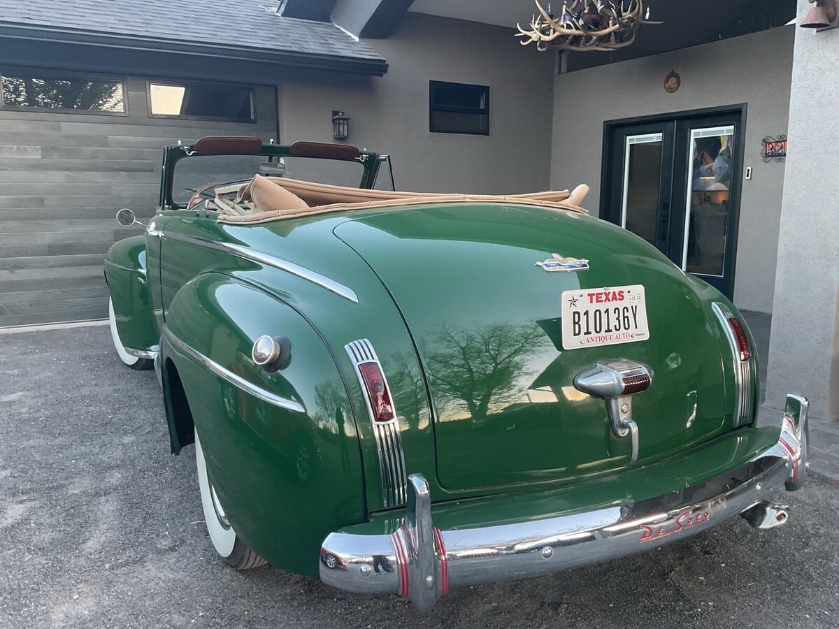 1941 Desoto convertible.with fluid drive automatic. This is an older restored car in amazing shape. The car from an estate out of midland Texas. This older gentleman amassed a car collection of over 40 cars. I have owned several classics and know a great car when I see one. This car shows no signs of patch panels or hammer marks on inside of fenders. The floor shows signs that it is factory with no sheet metal work done so first and most to me is that it is a solid solid car. My guesse if the car could speak is that it was a very pampered car. There is no bubbling on car the stainless and chrome are in great shape. All glass is in great shape and all windows roll up and down freely with no hesitation. The paint does show Sighn of ware scratches and nicks. The radio was completely rebuilt but I have not connected any wiring for it. The car does have a deluxe heater. Engine the engine starts every time for me and purrs I have a video I can send with engine running . That video was taken first thing in the morning and idles perfect afterwards.i have driven car up and down my block and runs good. The Intior is in good shape I don't know if the door panels are original to the car but they might . All original Desoto art deco door handles and window handles are in the car. The convertible top,the top bows have been restored and have period correct paint on them the material is in good shape and is upgraded canvas top not plastic. The convertible back window is hazy and would suggest replacing it. This is a factory power top which has all the components for it however I couldn't get top to work right I can here motor run but cannot get it to do its function. I disconnected power top pistons so you can put top up and down freely.this is a great driver quality car but not a fresh restoration and price reflects it.car is in Albuquerque New Mexico 87114 buyer is responsible for shipping .a 500 dollar non refundable deposit due at end of auction.if you have an eBay number rating less than ten I will cancel you're bid message me for additional info or if you would
