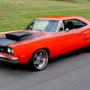 Goodguys Missle '71 Pro Touring Challenger R/T, Original $240K documented build of the greatest components known to exist, Original winning design drawings signed&framed, The fastest autocrossing muscle car known to exist, New style GEN III SRT8 426 HEMI built by Indy Cylinder head with aluminum heads@505 real horsepower, set back 5" for a real 50/50 weight distribution, Stand alone F.A.S.T custom dual quad 2x4bbl EFI Fuel injection + engine management system, Race ready TKO 500 5 speed transmission w/twin disc clutch and legendary pistol grip shifter, Ultra cool Roadster shop Ford 9" fully INDEPENDENT rear w/ HD halfshafts, custom upper&lower control arms and 3.89 posi-traction, Custom upper and lower control arm front suspension, HD sway bar, Corvette C6 spindles, Ridetech coil over shocks, Great sounding custom bent TTi exhaust run through the drive tunnel for clearance, Fast ratio power steering, Mirror finish TX9 black paint with matt black R/T ( Rapid Transit) stripes, Recaro Black leather sport bucket interior (Matching dash, door panels & console too!) Custom VHX multicolor gauge setup, Baer 14" rotors and 6 piston caliper brakes, Lowered 3" for a great looking stance, Be Cool triple core all aluminum radiator w/ dual electric fans, Dynamat sound deadening for the floors-firewall-trunk, Polished Billet engine accessory pulley system, Billet pedal dress up set, H.I.D Headlights,Pushbutton start, High end Kicker digital sound system w/AM/FM/CD/SAT/iPod jack, Modern Air-conditioning and heat, Detailed show ready engine compartment & trunk compartments, In your lifetime you will never see a better built, better handling piece of history at about half the cost to build it! Video, photo and recent appraisal accompanies the build of this spectacular machine, Financing available on this muscle carVehicle Details: