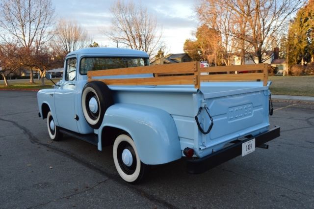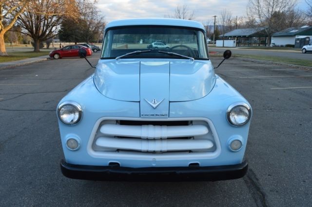 *** BEAUTIFUL !! - VERY RARE - RESTORED - PAMPERED SURVIVOR 1955 DODGE C1B 1/2 TON PICKUP !! ****** BOUGHT BRAND NEW IN REXBURG, IDAHO ON JUNE 7, 1955 !! ****** STRONG !! - APPEARS ORIGINAL !! - OPTIONAL - CODE "VT-338" 241 CID POLYSPHERICAL HEAD V8 MOTOR - ORIGINAL INTAKE MANIFOLD - ORIGINAL EXHAUST MANIFOLDS - ORIGINAL VALVE COVERS - ORIGINAL STYLE CARBURETOR - ORIGINAL "OIL BATH" AIR CLEANER HOUSING !! ****** SMOOTH - THREE SPEED MANUAL TRANSMISSION !! ****** EYE POPPING BEAUTIFUL !! - RACKHAM BLUE AND POLAR WHITE EXTERIOR FINISH !! ****** BEAUTIFUL - BRAND NEW - PROFESSIONALLY INSTALLED OAK WOOD SLAT BED !! . FACTORY ORIGINAL FIREWALL MOUNTED DATA / VIN PLATE - ORIGINAL DODGE OWNER SERVICE CERTIFICATE BOOKLET !! ****** VERY NICE !! - MOSTLY NEW BLACK VINYL INTERIOR !! ****** FACTORY GAUGE CLUSTERS - FACTORY POWER WIPERS - GOOD HEATER AND DEFROSTER - FACTORY MANUAL CHOKE - FRONT AND REAR TURN SIGNAL INDICATORS - FACTORY POP-UP FRESH AIR VENT !! *** *** AWESOME !! - FACTORY ORIGINAL DODGE WHEEL COVERS AND GOOD - PERIOD CORRECT - WIDE WHITEWALL BIAS PLY TIRES !! ****** NICE - DRY - SOLID - IDAHO HIGH MOUNTAIN DESERT - WESTERN TRUCK SINCE BRAND NEW !! ****** 100+ ADDITIONAL PICTURES AND A VIDEO INCLUDED !! ***Take a look at this BEAUTIFUL !! - VERY RARE - PAMPERED SURVIVOR 1955 Dodge C1B 1/2 Ton Pickup !! We recently purchased this pickup from the revious local Idaho owner and as you can tell in the pictures and video it was his pride and joy !! It was bought BRAND NEW in Rexburg, Idaho on June 7, 1955 and has been a NICE - DRY - SOLID Idaho High Mountain Desert - Western truck since NEW and it shows !! It still retains it's correctly mounted - FACTORY ORIGINAL firewall mounted data / VIN plate and it's ORIGINAL 1955 Dodge owner service certificate manual, both of which are shown in pictures. I drove this pickup for several days as my daily driver and I assure you it runs and drives WELL !! If you can make it to Boise please come take a look at and drive this BEAUTY for yourself, you won't be disappointed. This is a QUALITY DODGE PICKUP THAT IS READY TO DRIVE, SHOW AND ENJOY !!At the heart of this C1B Pickup is what appears to be the STRONG - FACTORY ORIGINAL - OPTIONAL - Code "VT-338" 241 CID "Polyspherical Head" V8 motor that is running VERY well. The motor also sports the ORIGINAL intake manifold, ORIGINAL exhaust manifolds, ORIGINAL valve covers, ORIGINAL Style carburetor and the ORIGINAL "Oil Bath" air cleaner housing, etc. Sounds GREAT too with the factory style exhaust system. The engine is backed by a SMOOTH - Three speed manual transmission that also functions very well. The BEAUTIFUL !! - MOSTLY NEW - Black Vinyl interior is in VERY NICE condition including a VERY NICE ORIGINAL Black Vinyl bench seat, VERY NICE NEW Matching Black Vinyl door panels, VERY NICE NEW Black carpets, NICE ORIGINAL Dodge steering wheel, VERY NICE ORIGINAL Factory gauge clusters, VERY NICE NEW Black Cloth headliner and a VERY NICE Matching Rackham Blue and Black dash!! All of the ORIGINAL black rubber weatherstripping is still soft, supple and in good condition for being original. The BEAUTIFUL - Rackham Blue and Polar White exterior finish is EYE POPPING BEAUTIFUL !! showing several small chips, scratches and imperfections that have been touched up but still looks GORGEOUS as you can clearly see in the VIDEO & 100+ ADDITIONAL PICTURES !! This C1B Pickup comes nicely equipped including factory front wing windows, factory gauge clusters with 110 MPH speedometer, aftermarket water temperature gauge, factory power wipers, good heater and defroster, factory manual choke, original dual side view mirrors, front and rear turn signal indicators, factory style side mounted spare tire, factory pop-up fresh air vent and a factory folding rear tailgate. This C1B Pickup has GREAT looks and AWESOME 241 "Poly-Head" V8 power as well... what's not to like ?! The suspension and drive line seem to be in good working order as well as the electrical system. Check out the AWESOME - FACTORY ORIGINAL - Dodge wheel covers and GOOD - Period Correct - wide whitewall bias ply tires, they look OUTSTANDING on this Dodge Pickup and really retains that CLEAN "Factory Original" - look !! All of the ORIGINAL Style exterior body trim and moldings are in NICE condition including VERY NICE ORIGINAL Style Chrome badging, NICE ORIGINAL Black Front and rear bumpers and VERY NICE ORIGINAL Stainless Steel headlight surrounds. The CLEAN - SOLID - STRAIGHT pickup bed also sports BRAND NEW Oak wood slats and hardware !! All of the ORIGINAL light lenses and reflectors are also clear, bright and BEAUTIFUL !! I looked underneath and also included photos below, again this has been a NICE - DRY - SOLID - Idaho High Mountain Desert - western truck since NEW and it shows !! In my opinion, you're not going to find much nicer ORIGINAL floors than the one's on this BEAUTY !! Please pay close attention to the VIDEO & THE 100+ ADDITIONAL PICTURES and this description as they will answer your questions. If you need to speak to me my name is Kris and my phone number is (208)585-7155.We prefer a bank to bank wire transfer of funds as payment but we will also accept a bank cashiers check (US only) or a third party check but we will validate the checks authenticity and the funds must clear our account before the vehicle or the title to the vehicle is released to the buyer or the buyers agent. We do not accept PayPal.This is one BEAUTIFUL - VERY RARE - RESTORED - PAMPERED SURVIVOR 1955 Dodge C1B 1/2 Ton Pickup !! Please review our 1,300+ testimonials from our previous customers in our eBay feedback and see all of our satisfied auto buyer responses. We have been selling classic automobiles to buyers all over the world on eBay since 1999, 18+ years and have been in business for 28+ continuous years! Please do not bid on this auction unless you are serious. CHECK OUT THE VIDEO AND 100+ ADDITIONAL PICTURES !!!Vehicle Details: