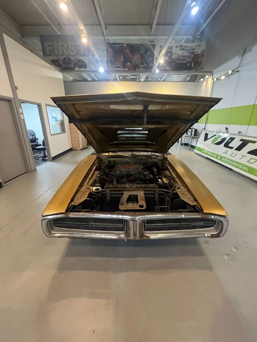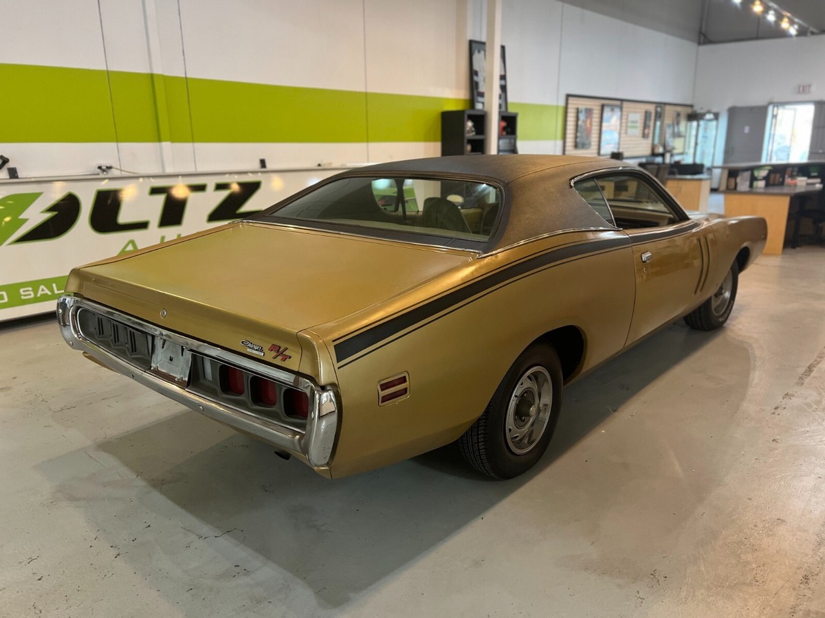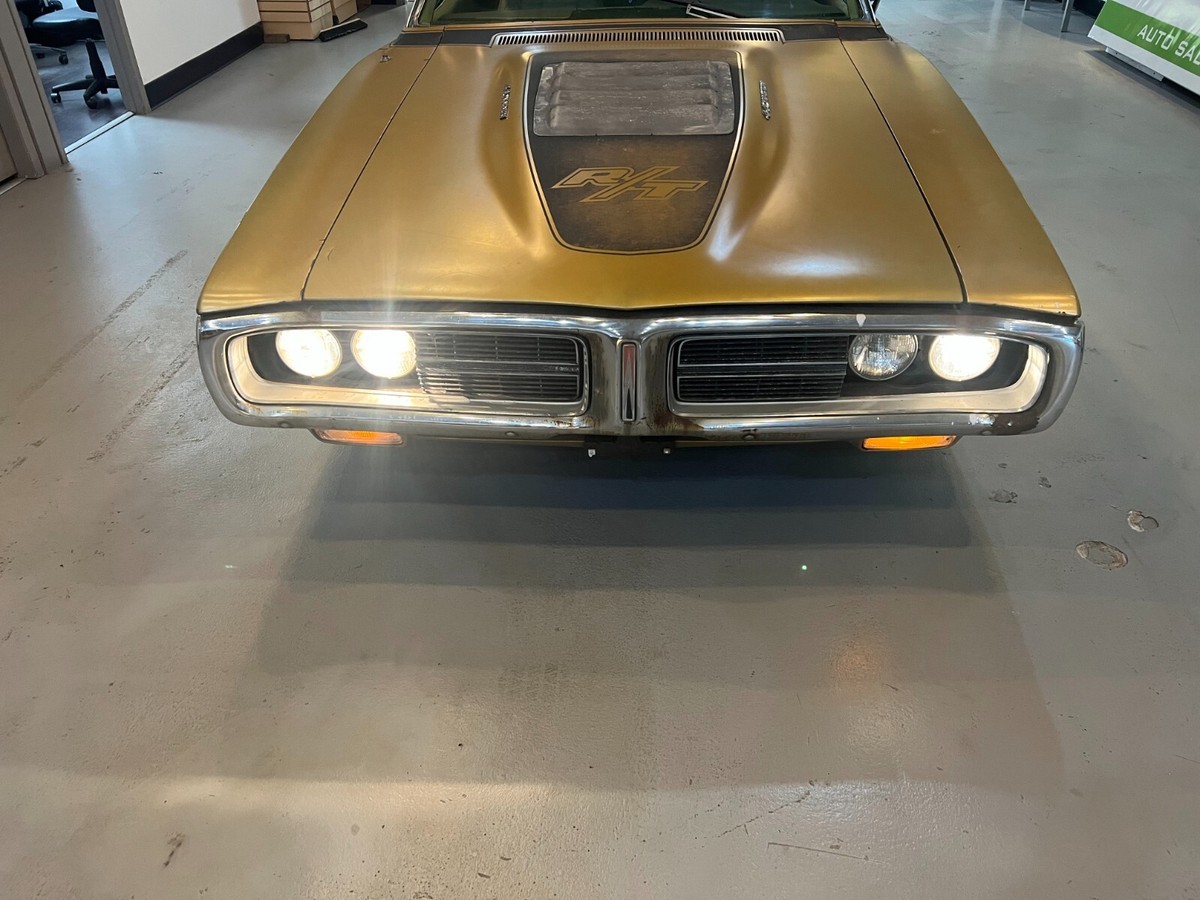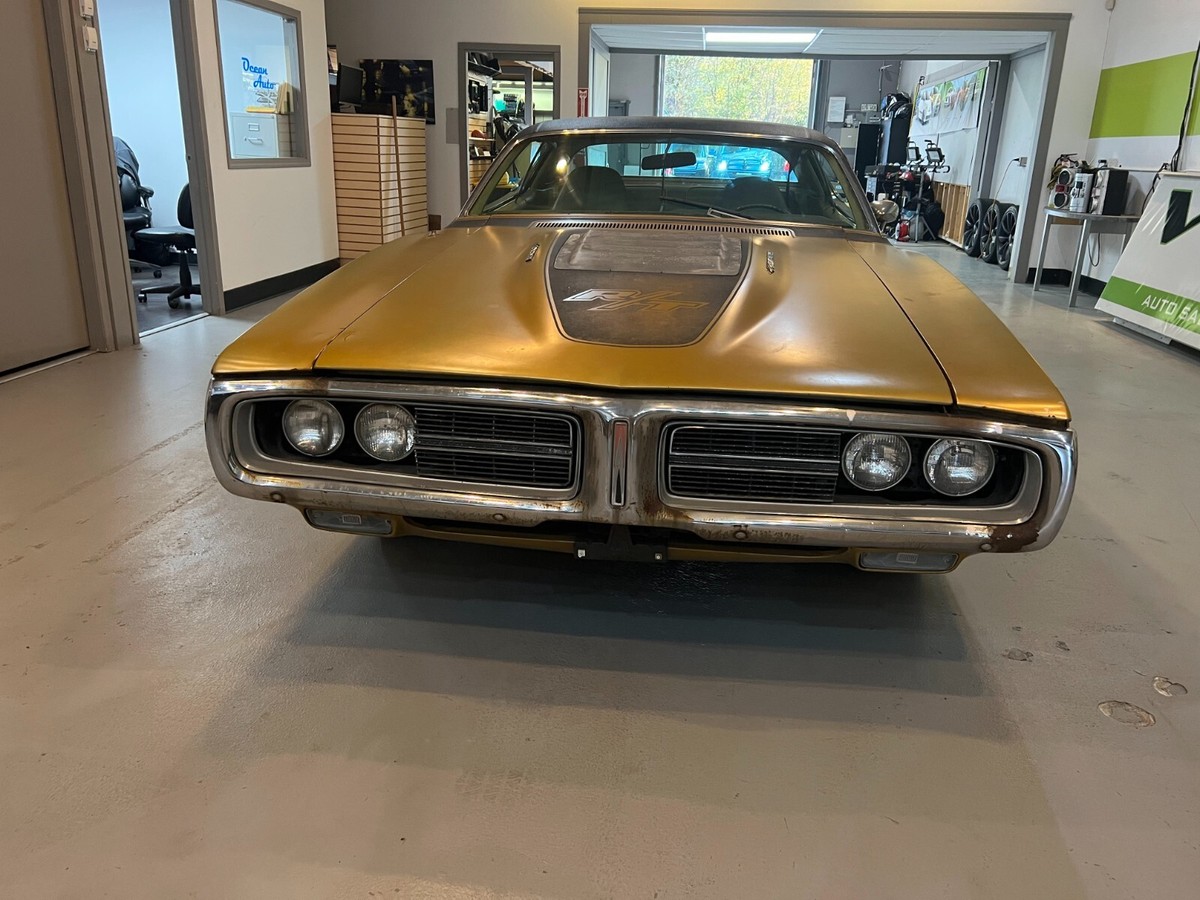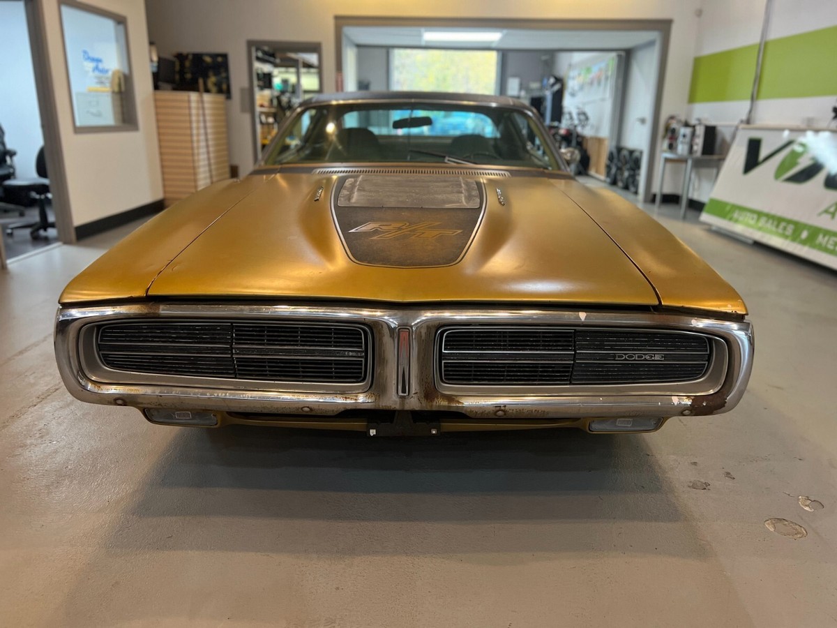 Floors, frame, and trunk are all very solid. Interior is in excellent condition. The dash does have a few cracks in it. All of the electronics work, including the hideaway headlights. The engine and tranny run out perfectly, recently rebuilt original carb.. Comes with all of the original 1971 R/T goodies - R/T louvered hood, R/T tail lights, R/T slotted doors. Most of the remaining R/Ts are either completely restored, or retain very little of their originality. This is a rare opportunity for somebody to take on. Clean Oregon title in hand, as well as all paperwork (a huge binder in fact) dating back to the 80's, providing it's entire provenance and pedigree status with all service records etc. This too comes with the car.I purchased it in 2016, it's been indoors ever since.Easy to restore to 'show quality' but I'm a firm believer that a car is only original 'once' so I wouldn't dream of touching it!1971 Dodge charger RT trim tag DECODEDWS23: Dodge Charger Special 2 Door Hardtop U1A: 440 370HP 1-4BBL 8 CYL 1971 Lynch Road, MI, USA 107067: Sequence number E86: 440 cid 4 barrel V8 (High Performance) 375hp D32: Heavy Duty Automatic Transmission GY8: Gold Metallic (Dodge) Exterior Color (1 of 11 registered in this color, 1 of 8 w/ 440 4bbl) D6Y3: Trim - Luxury, Vinyl Bucket Seats, Gold GY4: Light Gold (Plymouth), Honeydew (Imperial) Int. Door Frames 901: Build Date: September 01 018706: Order number V1Y: Full Vinyl Top, Gold U: USA Specifications C16: Console w/Woodgrain Panel H51: Air Conditioning with Heater 26: 26in Radiator G11: Tinted Glass (all)Not a hemi, but a 440 Magnum, the next best thing, priced below market price - and I do have some idea of what some of these RT's are fetching at auction (see 2nd last pic) and average prices for ALL 1971 Chargers (including non-RT's is $76,754 (see last pic):Getting more collectible by the day! When's the last time you could cruise the highways & byways while your car was accruing value rather than depreciating $$$ outta the tailpipe?Clean title, great condition esp when considering age! Runs and drives great - (West Coast Car) top is in new condition, floor pans and frame awesome - feel free to call or arrange an inspection.We ship World Wide