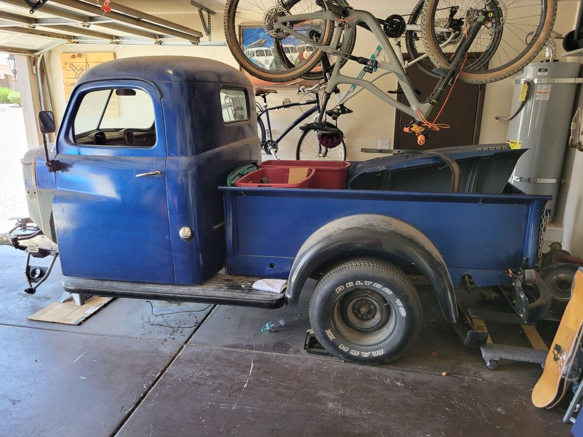 Classic blue stepside pickup truck. This is a project that will need to be completed in order to drive.