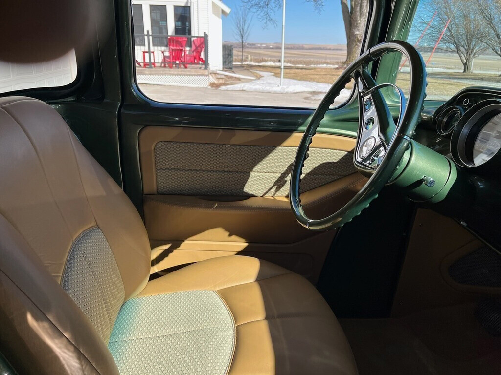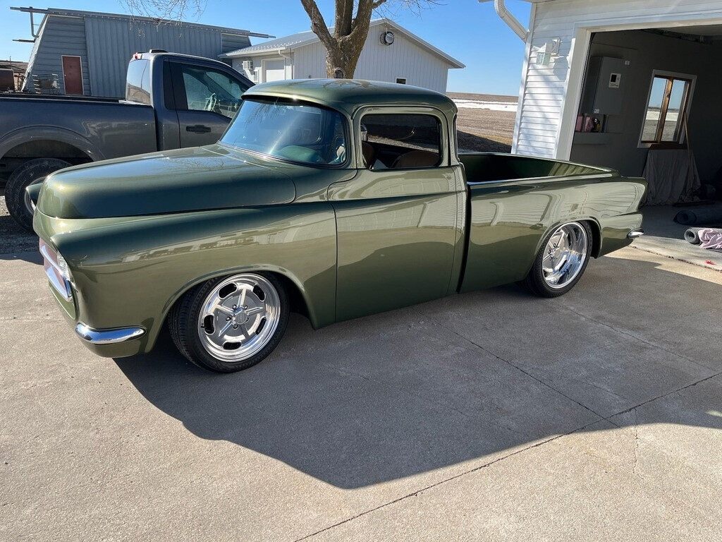 1957 Dodge D100 Pickup For Sale in Malvern, IA 51551 This Dodge is powered by a 420HP LS3 V8 engine paired with a 6-speed automatic transmission. It has 200 miles on the new engine and is shown with a green exterior and a tan and cream leather interior. This vehicle has been professionally rebuilt from the ground up and is garage-kept. Features Rebuilt by Eggleston Kustoms Interior by Eddie’s Rods & Customs Leather Interior 1957 Chevy Car Dash Hand-Built Wrap-Around Console Top Chopped 4.5” Hood Pancaked 1.5” 2012 LS3