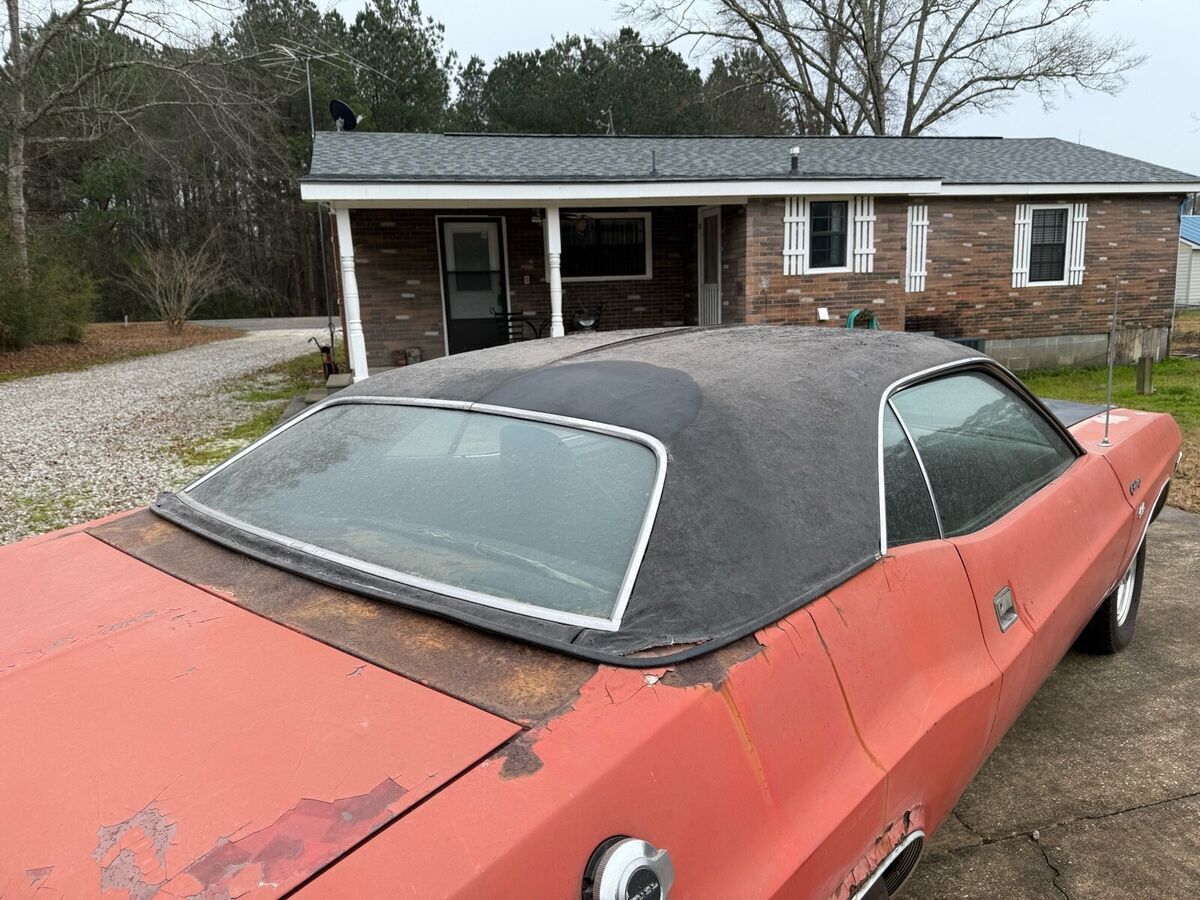 This 1970 Dodge Challenger 440RT U code automatic with a sure grip project car runs and drives great, gauges work, wipers work. Not original motor, has nice camshaft in it, sounds great. Transmission has shift kit in it. No fender tag, no build sheet. Front frame rails have been boxed. (nice job). Radiator support numbers do not match as it has been replaced. Rear frame rails are nice. Floors have been replaced with flat sheet metal as well as trunk floor. Car was probably restored in the early 90’s. I have a clear Pennsylvania title for it. It is registered and insured in Alabama as Alabama will not take a title for a car this old. Brakes, radiator and gas tank as well as tires are about 3 years old. I will include a restored dash pad done by ABC Mopars.As you can see this car needs work but is fun to drive and gets a lot of attention as is.
