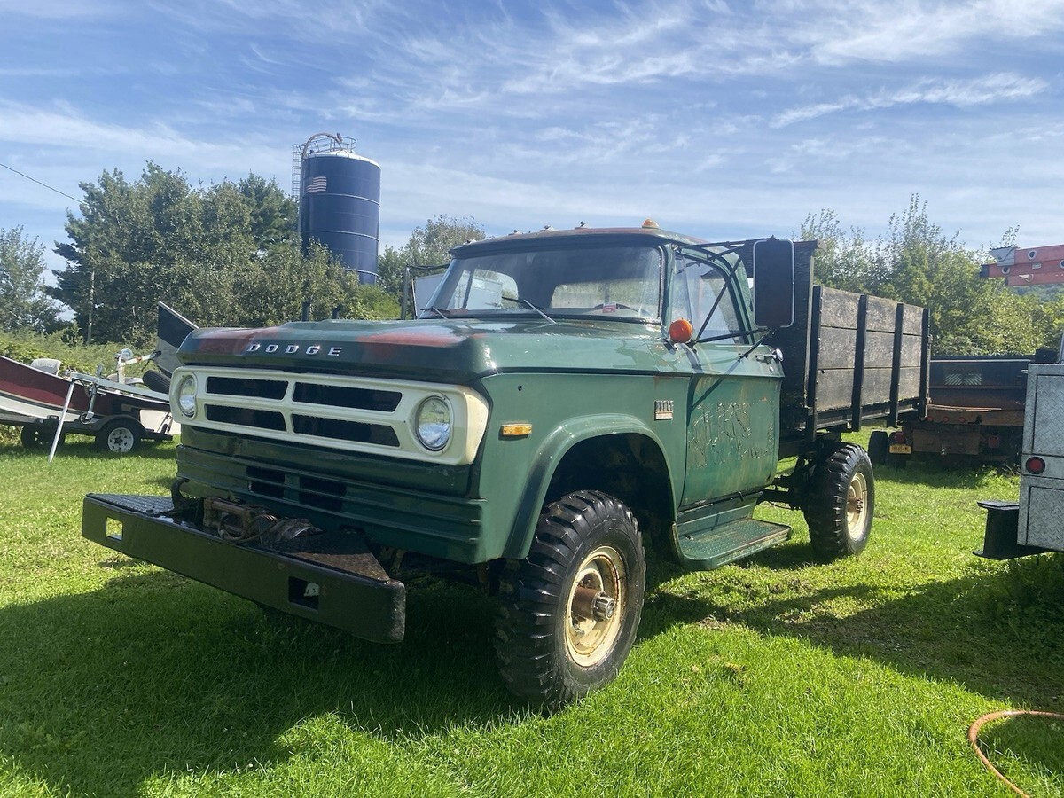 Vintage Dodge Power Wagon 1970 W300 4x4I bought this from a Christmas tree farm that used it up until the clutch went. It hasn’t been driven in a few years . The engine turns freely and the wheels roll freely. It is 1 ton w300 4x4 . It has a factory hydraulic dump bed and factory front winch. The drive shaft for the winch is disconnected and hasn’t been tested. The military tires hold ai, but have dry rot . It has some minor body rust and some small dings and dents. The frame is in excellent condition with minor surface rust . The front fenders have 500 badges on them but is definitely a w300 1 ton 4x4 . It comes with a transferable NY registration. My plans were to restore it and use it for our small farm in upstate NY. I think it has great bones and is a very solid truck and worth the time and effort to put into and would love to see it restored and brought back into service . Unfortunately, I don’t have the time and looking to make some room up at the farm. It can stay for a while until plans are made for transportation. Any questions feel free to ask.Thank you for looking.