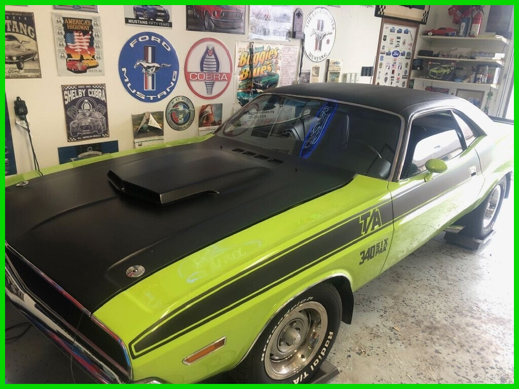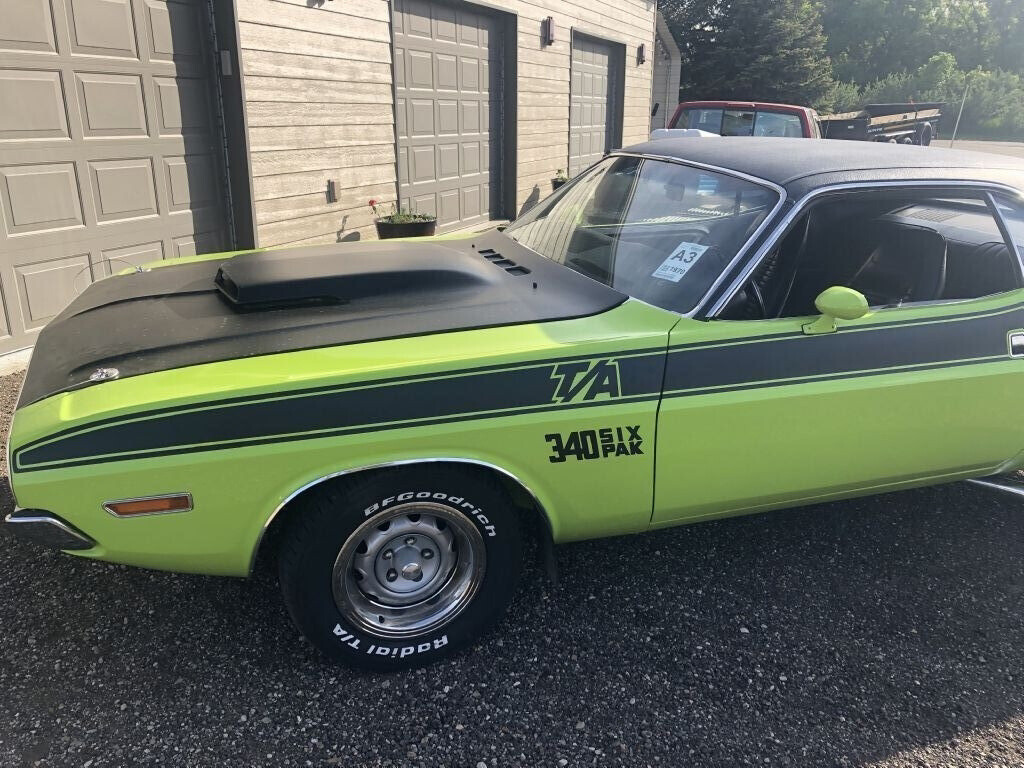 1970 Dodge Challenger T/A Tribute Car For Sale in Mandan, ND 58554 This Dodge is powered by a 340 V8 engine paired with an automatic transmission. It is shown with a Sublime Green exterior and a black interior. This vehicle has been restored. Features Black Vinyl Top KYB Shocks T/A Exhaust 15” Rally Wheels BF Goodrich Radial T/A Tires Owner’s Notes “1970 Dodge Challenger T/A Tribute Car that’s been very well done and is in excellent condition throughout. This tribute captures the iconic look and performance of th