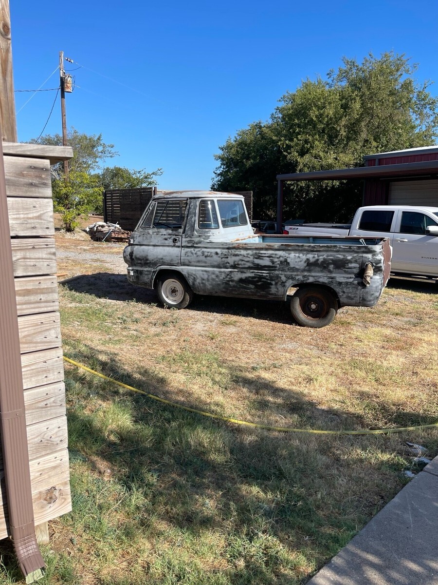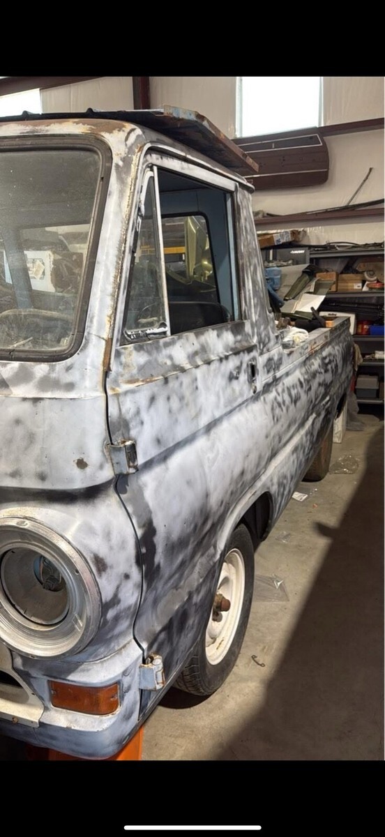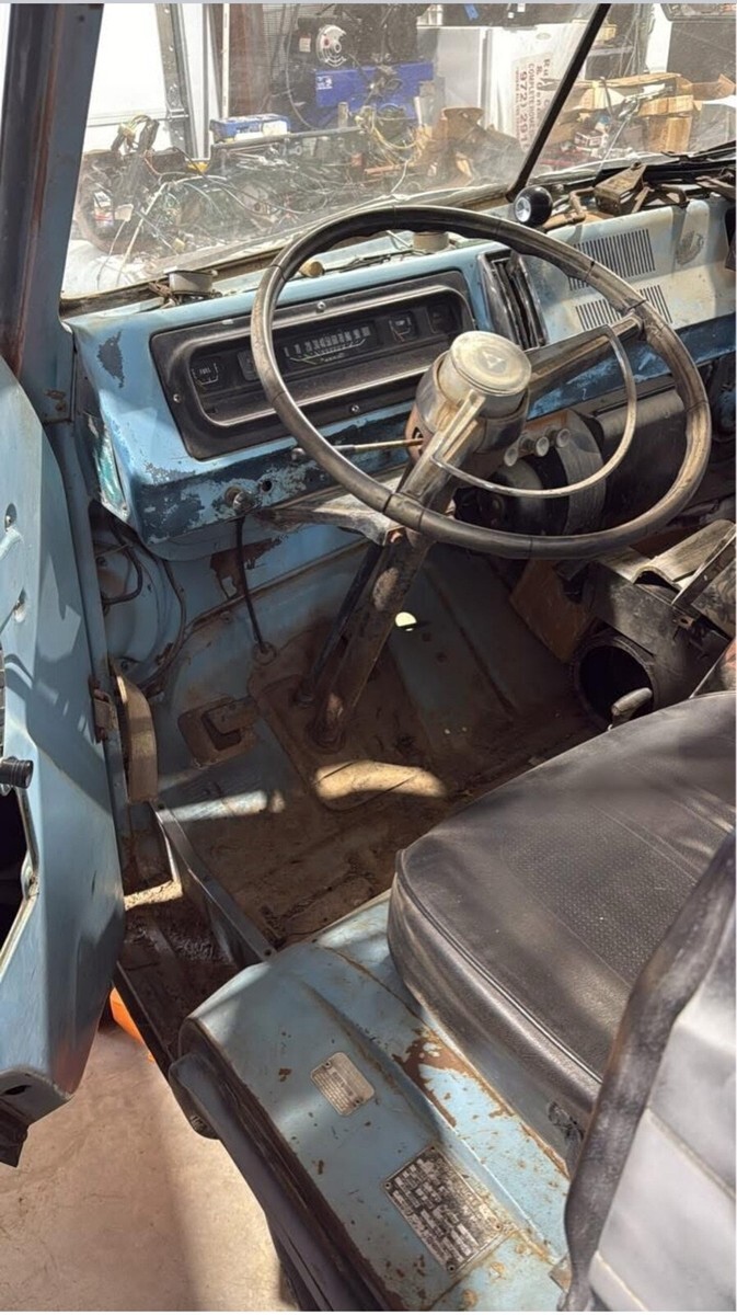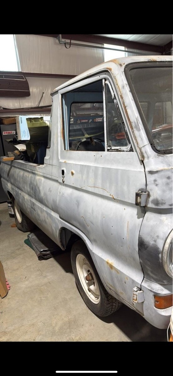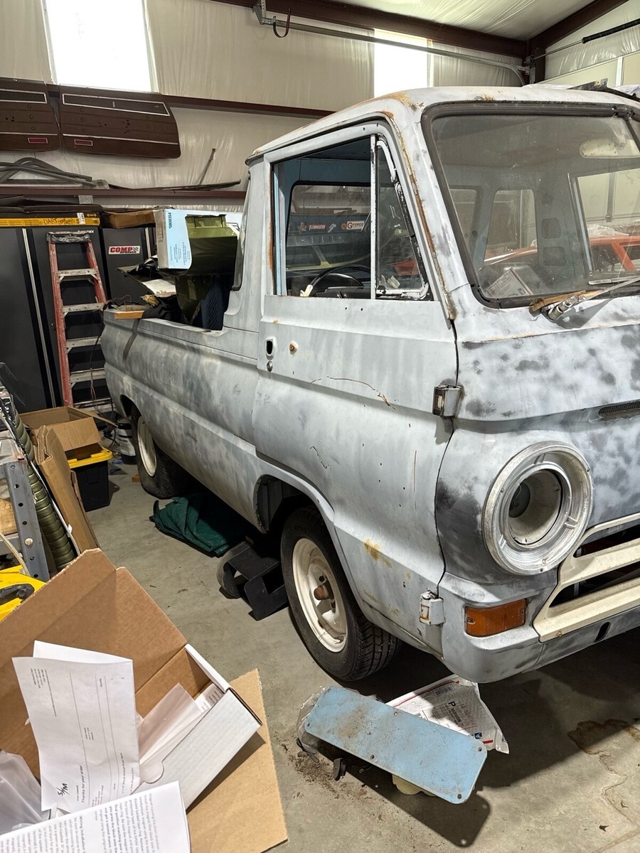 The truck was originally a six cylinder with a three speed manual transmission a conversion to a dash shifted automatic has been started. The truck comes with a running, low mileage 318 engine from a 1969 A-100 camper. The transmission is an original 727 automatic, designed for this truck and is from the same donor vehicle. the engine transmission will be securely stored in the back of the truck for transportation.