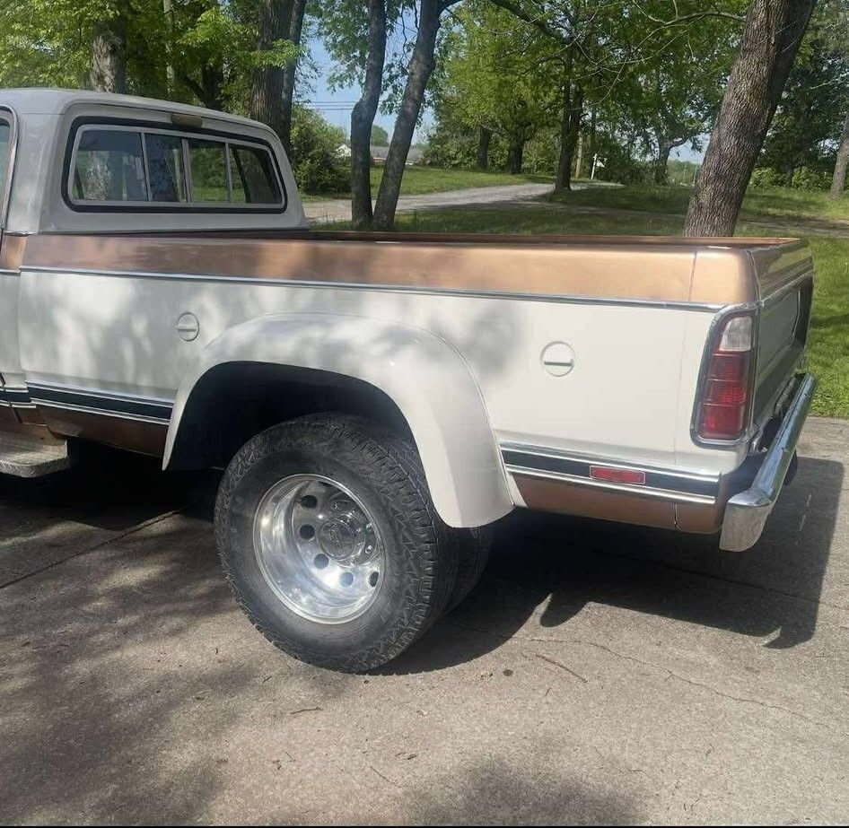 This 1978 Dodge D-300 Adventurer is a well-preserved example of Dodge's rugged heavy-duty pickup lineup. a strong 440 V8 and paired with an automatic transmission, this truck is ready for serious hauling or weekend cruising. The body is straight, the frame is solid, and the truck has only 54,000 original miles. The gold exterior and tan interior retain their classic charm, while the dual rear wheels give it extra capability. A rare and dependable vintage truck that's hard to find in this condition.