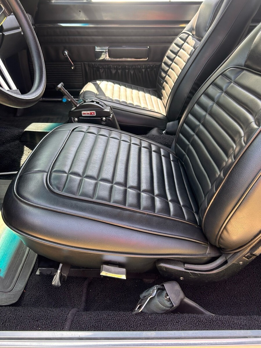 Interior is new with 70 bucket seats and the driver side has a 6 way seat. Interior has been gone through with new automates gauges and new dash pad. Seats, carpet and headliner all new. New package tray. New radio and speakers .