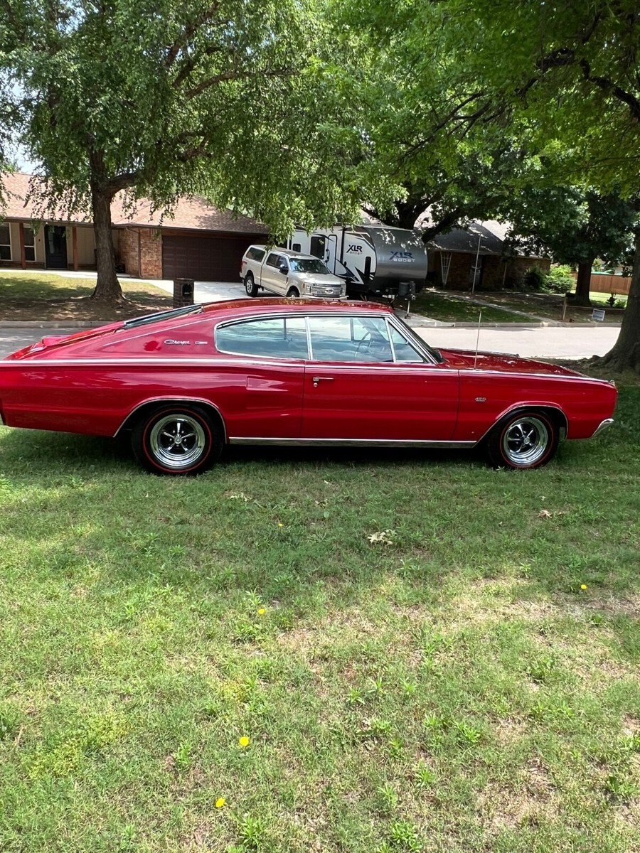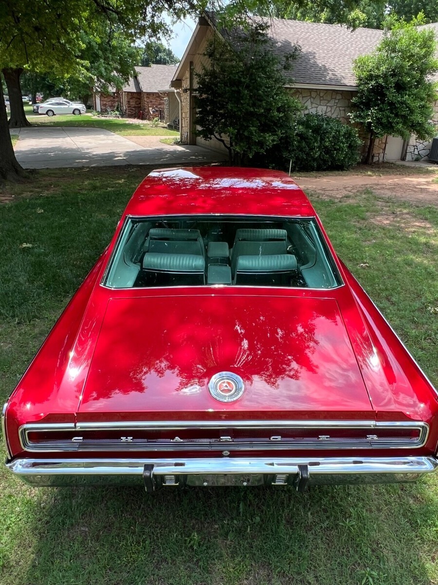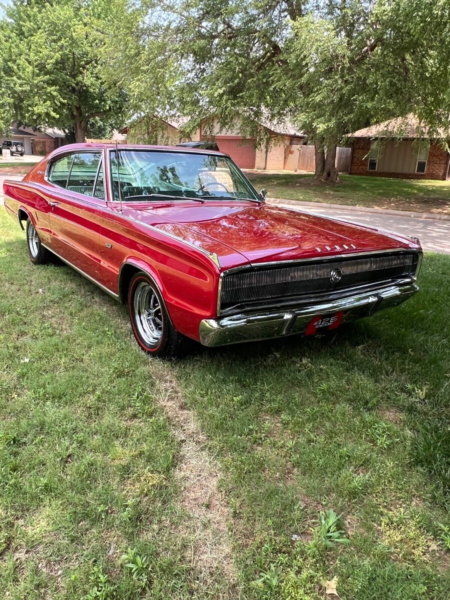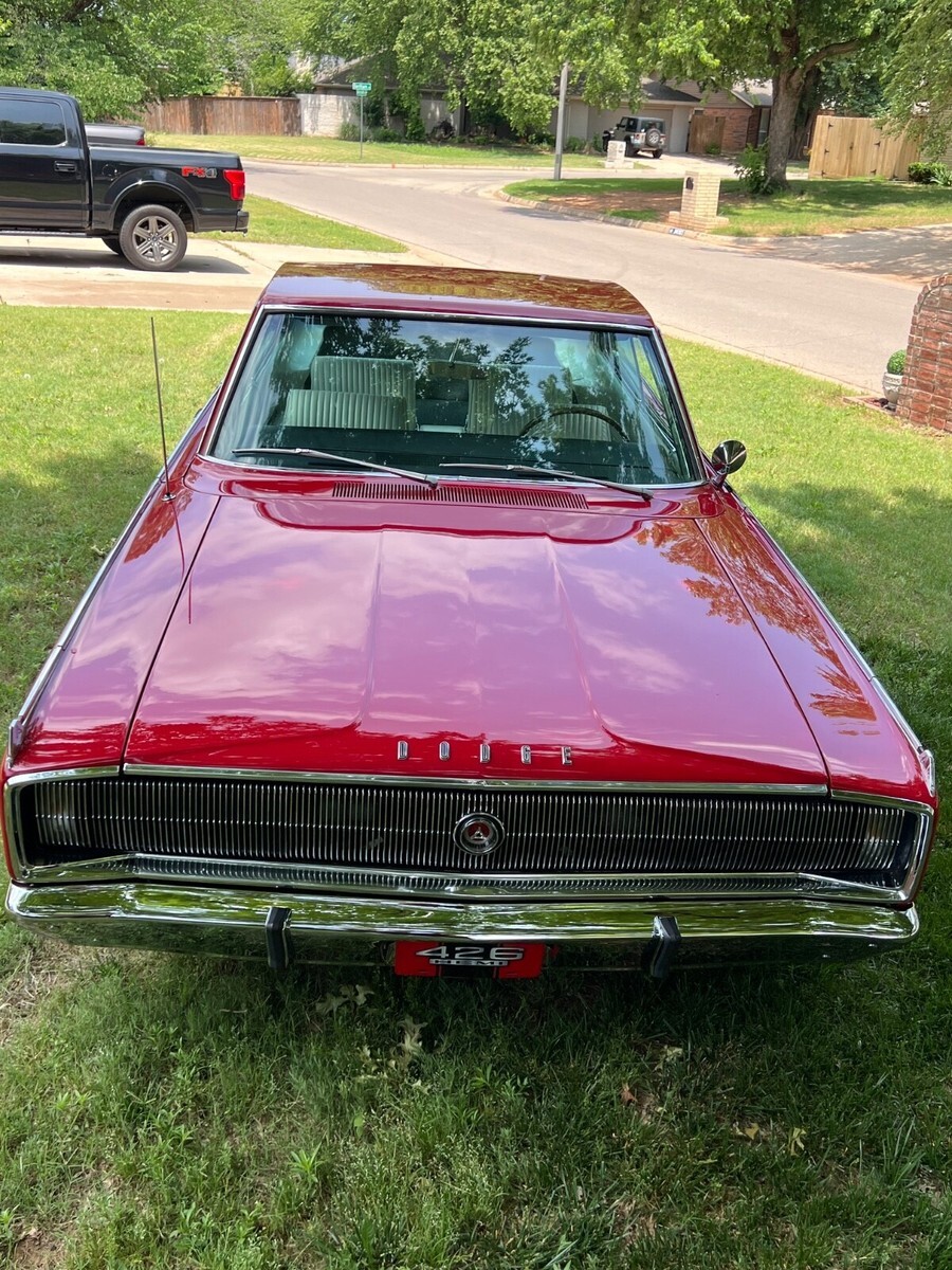 For sale or trade 1 of only 58 produced 1967 Dodge Charger J code 426 HEMI 4 speed and 1 of only 12 with the low profile NASCAR rear spoiler. This car has been fully restored and is super straight with show quality paint and excellent stainless and chrome. The drive train and engine components are rebuilt and original to the car including the A33 HD 4 speed and DANA 3.54 Sure Grip rear axle. The red exterior and white interior are correct for the car and match the original fender tag and the original Certicard. Super nice rare car and it drives and runs very well. I have the original steel wheels mounted on period correct wide oval super sport tires and a nice set of poverty caps and a set of original spinner hubcaps that come with the car. Everything works and underside is as nice as the top side.