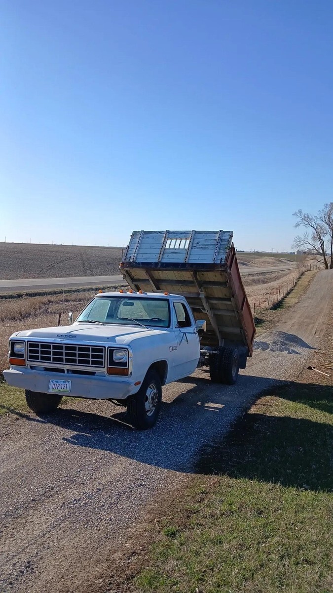1981 Dodge D350 Dually Flatbed dump truck. Has alot of new parts including,new alternator, engine mounts, calipers in front, rear lights, radio with Bluetooth and speaker, tires, bulbs, left front upper control arm. Might need the tank flushed and mabe the left front camber adjusted. Dm me for more details.