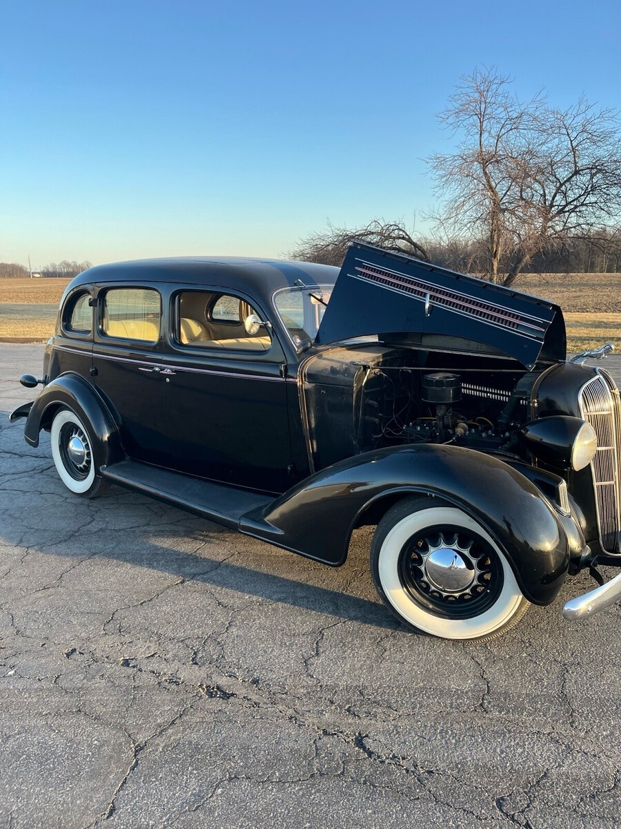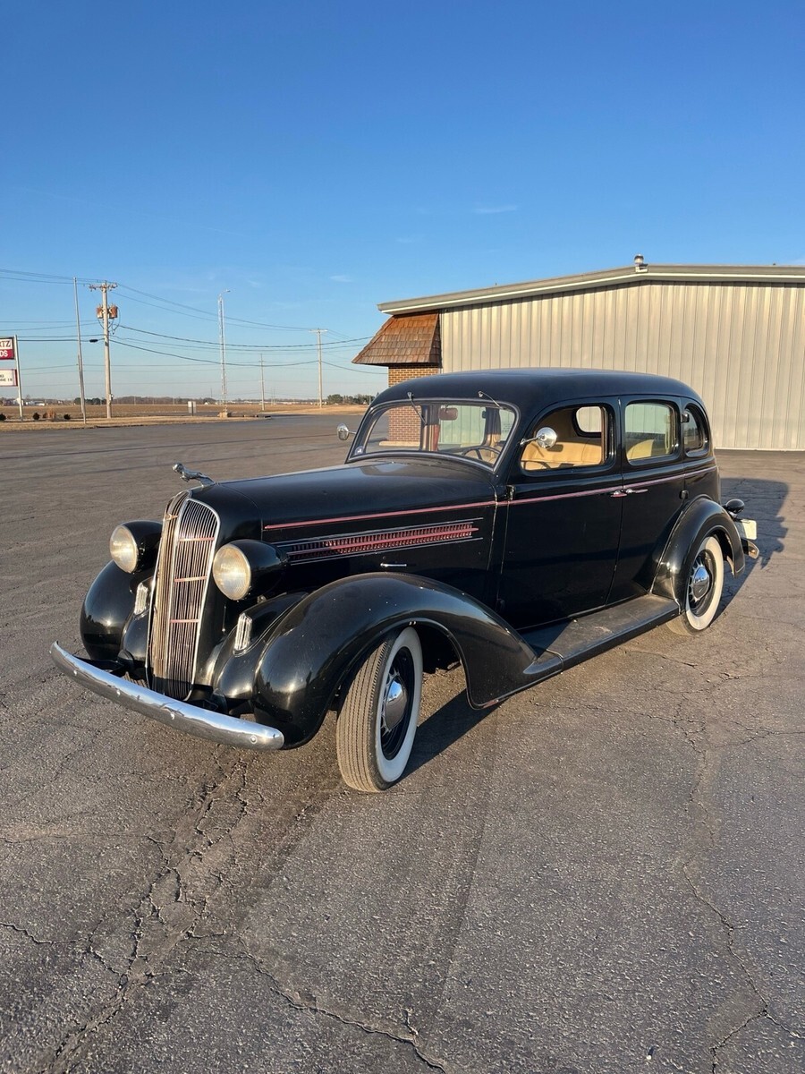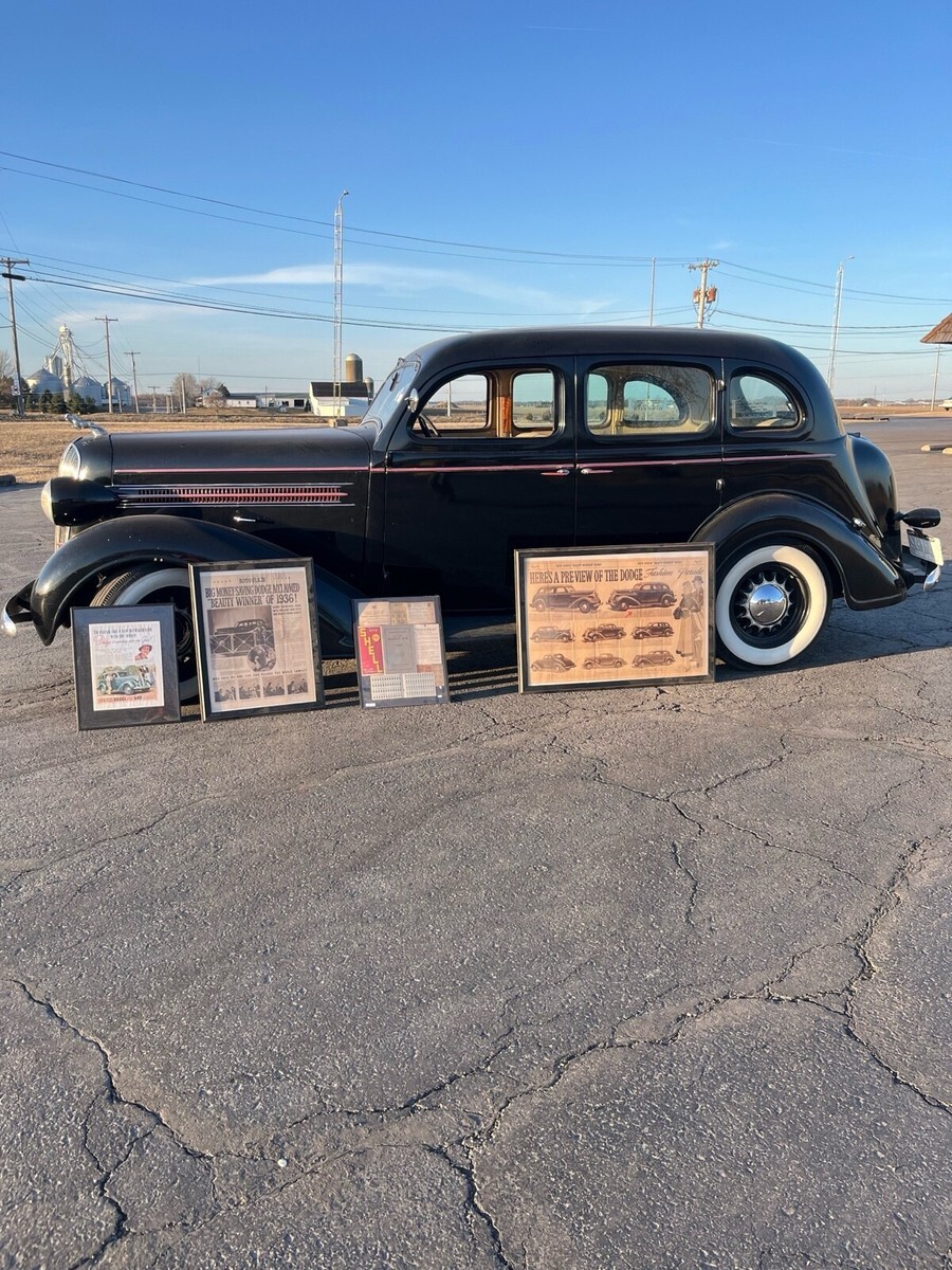 Almost completely original 1936 Dodge Brothers D2 touring sedan. Car runs and drives excellent as I drive it regularly. Has the original 218 cubic inch inline six cylinder and three speed transmission. Interior is 100% original. Carb has been rebuilt, new battery, new temp gauge, new spark plugs, pinion seal, fuel filter etc.. Comes with many new old stock high quality made in USA parts as pictured.