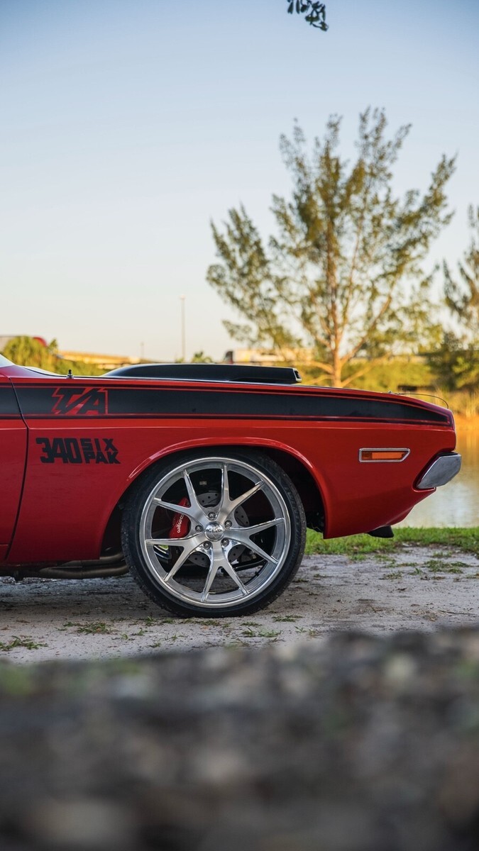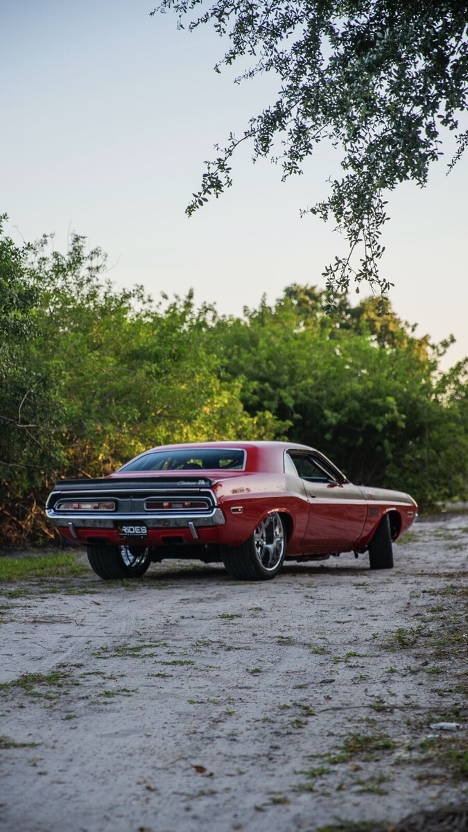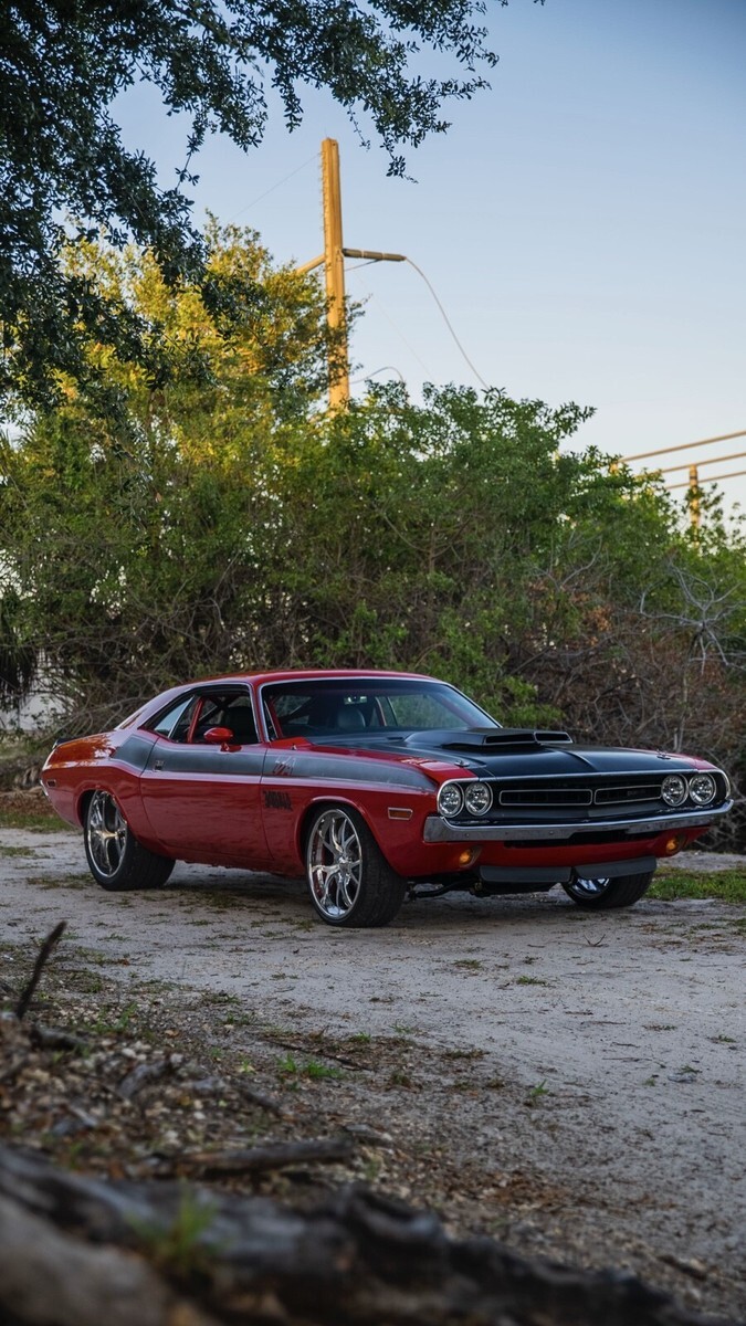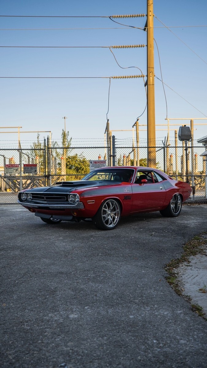 This 1971 Dodge Challenger is a modified vehicle with updates to the exterior, interior, and drivetrain. The owner has had it for 1 year and the vehicle runs great. It is mainly used for car shows. The car features a red color, clean title, and low mileage of 5000.
