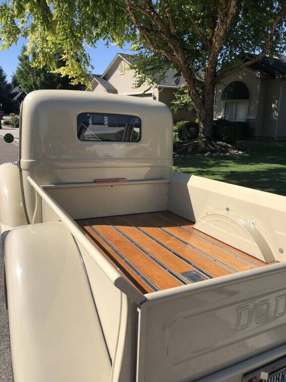 1937 Dodge Pickup HotRod This 1937 Dodge Pickup HotRod is a beautifully restored custom build powered by a 1988 Dodge 360 cu. in. V8 engine producing approximately 300 horsepower, paired with a professionally rebuilt A727 3-speed automatic transmission with a shift kit. The frame-off restoration was completed in 2020 and includes extensive upgrades throughout. The frame was stripped, sandblasted, and reinforced with a new engine cross-member before being finished in Engine Red. A Mustang II independent front suspension was installed along with power steering, a 9-inch Ford rear end on new leaf springs, and power disc brakes with stainless steel lines. The body features original hood, cab, and box components, with new lower panels,