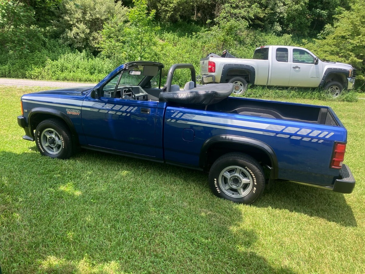 This 1990 Dodge Dakota convertible, originally equipped with a V6, has been upgraded with a new Chrysler 318 engine with less than 1,000 miles since its rebuild, offering impressive performance. The vehicle features new body mounts, headers, and a dual exhaust system, all maintained in mint condition, complemented by a factory convertible top boot. With its low reserve, this classic truck represents a unique opportunity for collectors or enthusiasts seeking a well-maintained, rare convertible Dakota with modern engine upgrades.