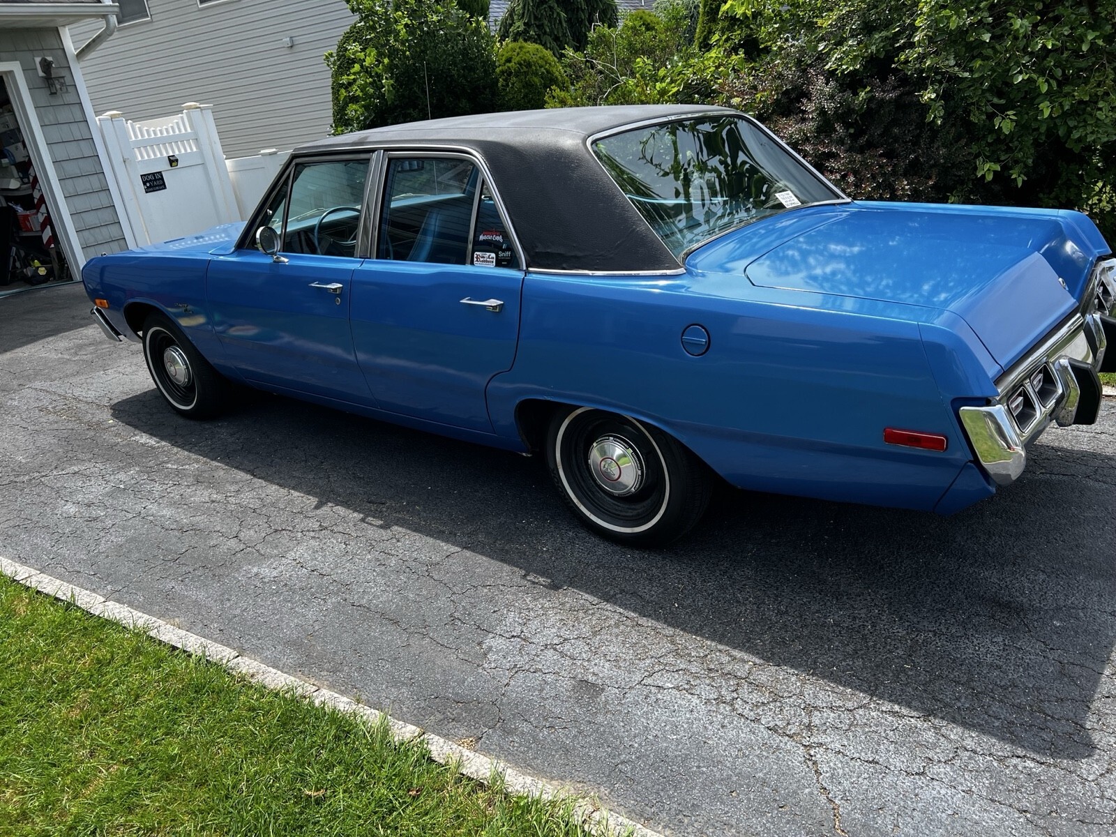 1973 Dodge Dart custom 225 slant 6. 90k original miles. Working AC, all lights and sounds work. Rebuilt transmission with less than 200 miles on it. New carburetor, speedometer cable, front end bushings, power steering pump was rebuilt, valve cover gaskets replaced, LED taillight kit in factory lenses, led head lights and parking lights, new starter, new plugs, new battery, new distributor, runs excellent - this car gets so much attention. Front seat needs love and so does headliner. Back seat is Mint. No cracks in dashboard. Body is pretty good. Some rust under top. Body is ceramic coated