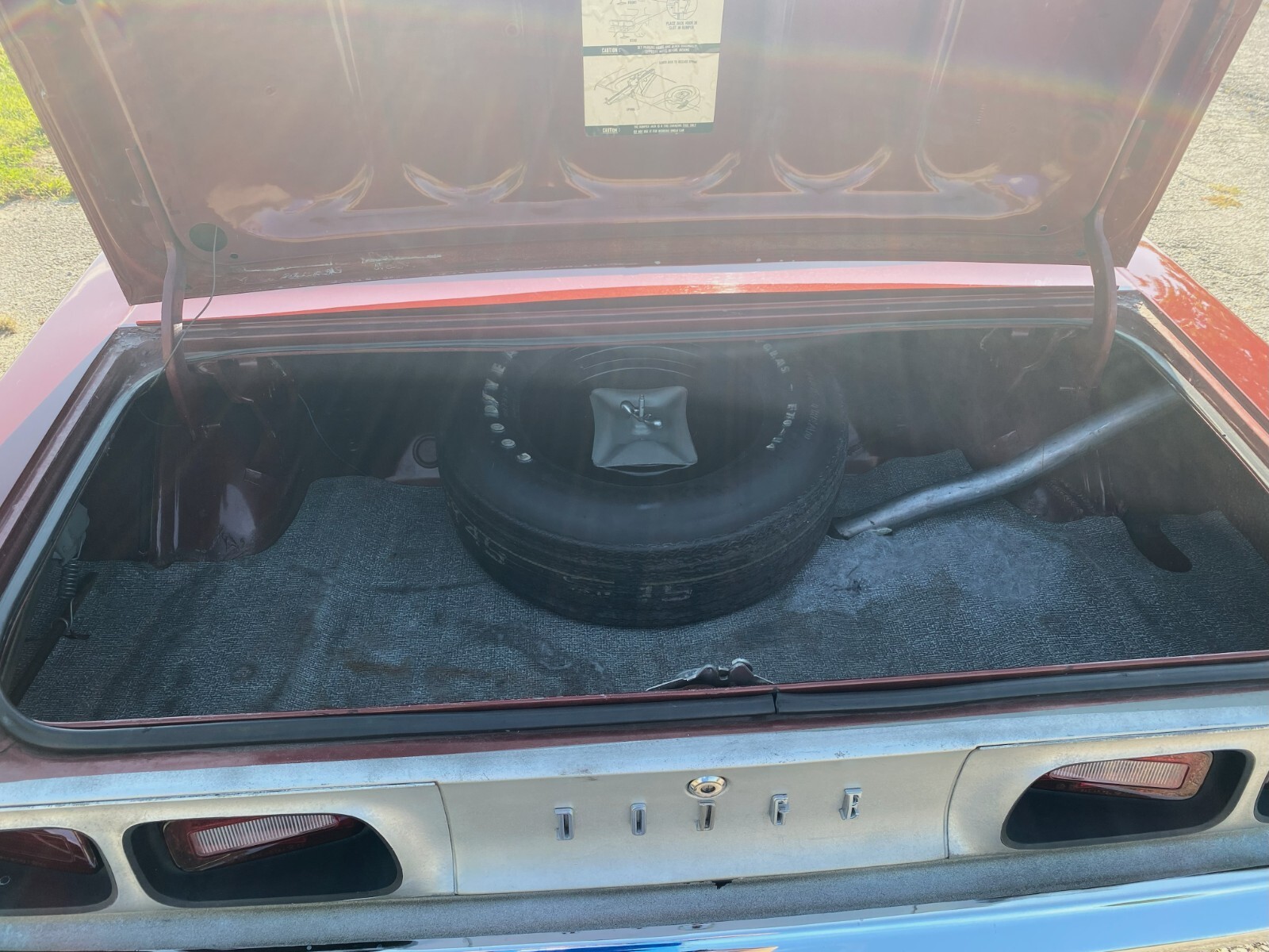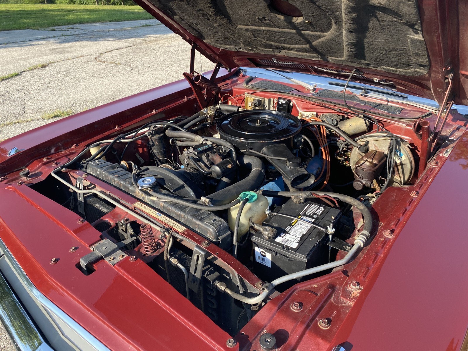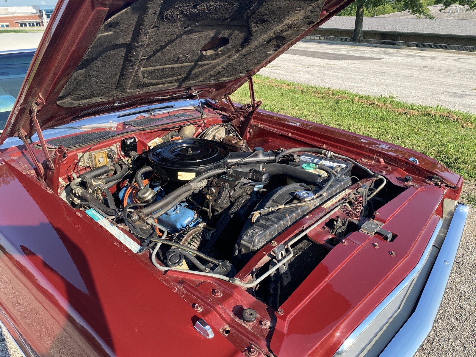 The odometer currently shows 37,711 miles to date; I do not have any paperwork to prove that it is the actual mileage. However, judging by its condition and the amount of original equipment on it, the mileage could be accurate. I found the broadcast sheet behind the back seat which will be included with the vehicle. I changed all of the fluids along with the belts and hoses. When doing so, I removed the original Mopar fan belts. The body and underside is extremely solid as you can see in the pictures and appear to retain the original undercoating. It has been repainted once in its original factory color, Burnished Red Metallic (GE7). The white vinyl top is in excellent condition. It runs and drives very well and has a clean Missouri title in my name.