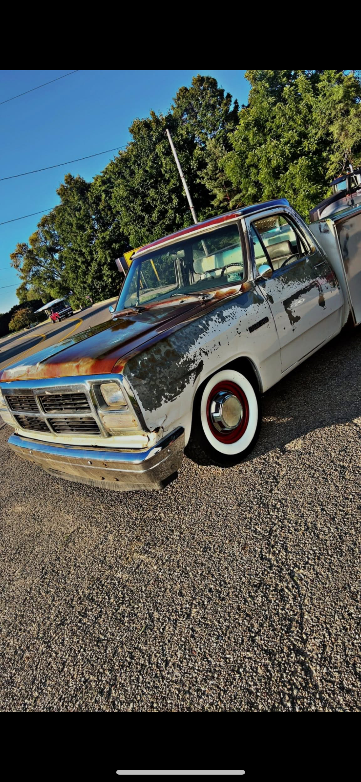 The 1993 Dodge D350 is a classic utility truck with a unique blue interior and white exterior. It features a powerful 8-cylinder engine with 199270 miles on it. This 2WD vehicle has automatic transmission, power steering, air conditioning, and other convenient features. The vehicle is a left-hand drive model with 2 doors, making it ideal for work! Made in the United States, this Dodge D350 is a stylish choice for anyone looking for a versatile truck.The front and back has been lowered, as well as a clear coat over the patina. The bed is made of oak and cleared. Comes with white wall tires and custom mirrors. The frame is freshly painted. Come check out this one of a kind!