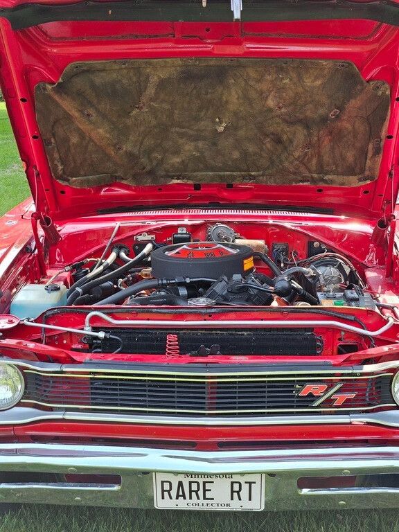 This Rare Coronet is powered by a 440 Magnum V8 engine paired with a 3-speed automatic TorqueFlite transmission. It has 69,000 miles and is shown with a red exterior and a black interior. This vehicle has been well-maintained.