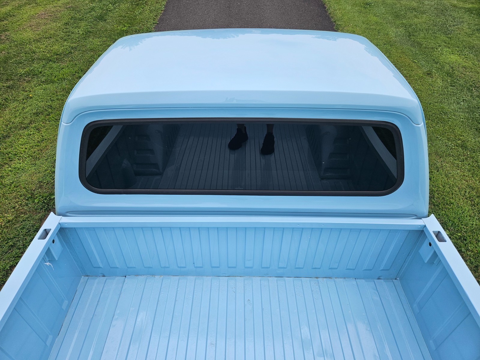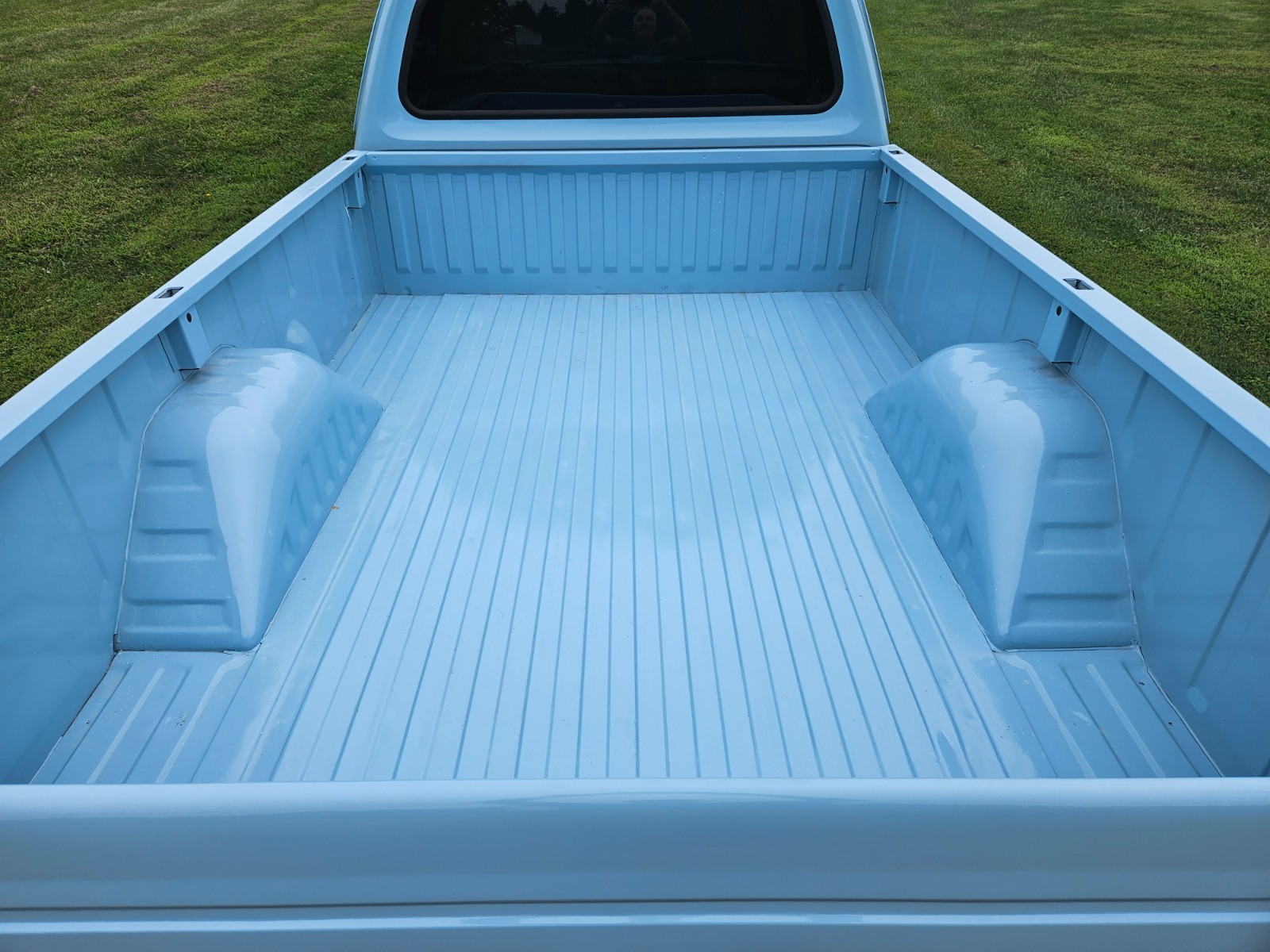 The body was taken down to bare metal (inside and out), ppg epoxy primer coated, and covered in single stage B1 Mopar blue. There is not one bit of rust and the entire underneath has been rust encapsulated as well as the cab floors (top and bottom), inner wheel wells, under hood, firewall, and most suspension parts . Bed and rails are perfect and encapsulated as well. Body gaps door, fenders, hood, bed to cab are excellent. This truck is way over restored for its value. Paint is super glossy and slick and has been wet sanded and buffed. Paint and finish body work is not perfect but easily better than 80% of anything I see at a car show. No leaks from trans, motor, or rear.