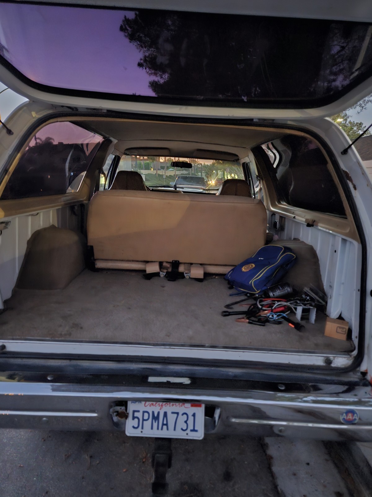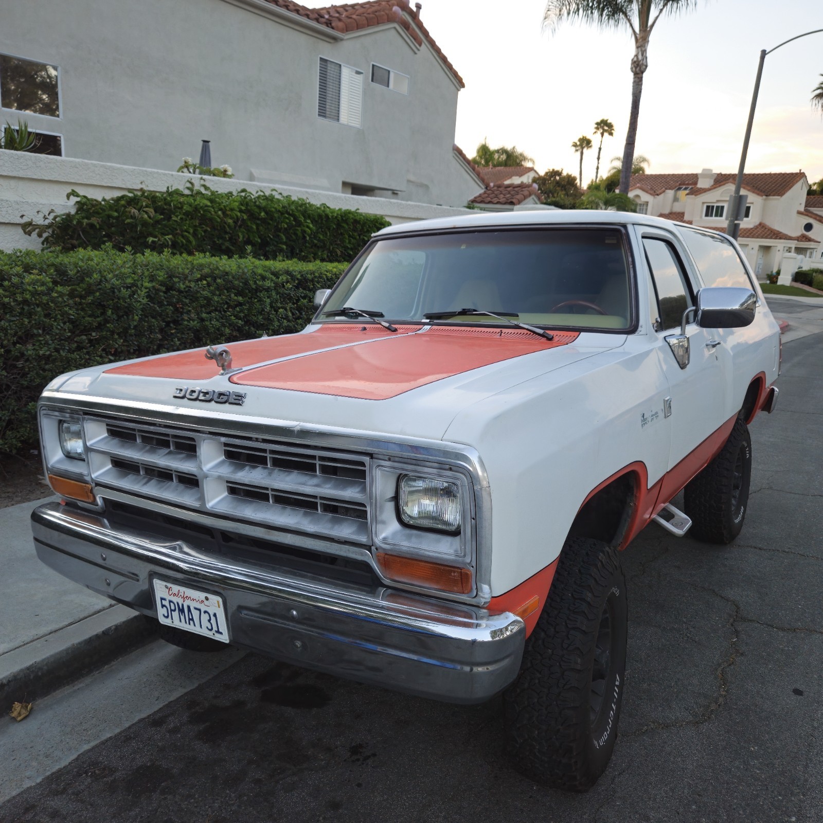 The 1989 Dodge Ramcharger AW150 is a collector car with a tan interior and white exterior. It has a 5.2L Mopar 318 V8 engine, automatic transmission, and 4WD drive type. This SUV has been registered in the USA with 4 previous owners and has a mileage of 172955. It comes with features such as AM/FM Stereo, CD Player, Air Conditioning, Trailer Hitch, Tinted Rear Windows, Cloth seats, and Tow Bar. The vehicle title is clean, and it does not have a service history available.