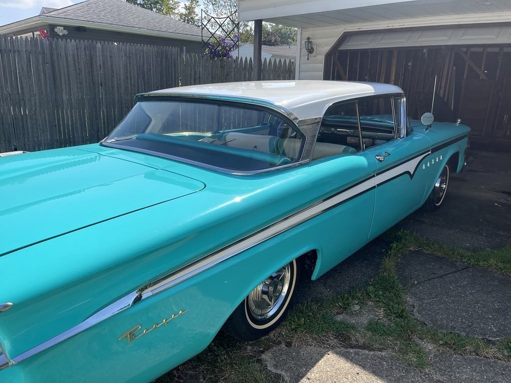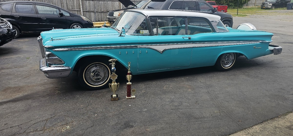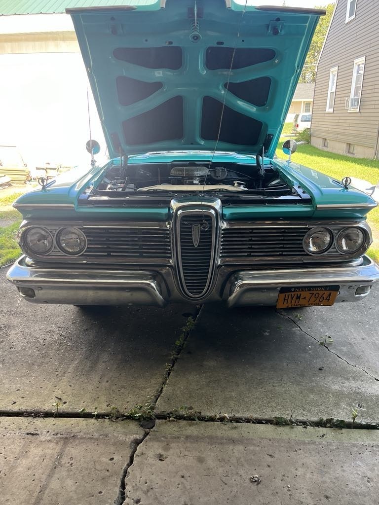 This 1959 Edsel Ranger is a restored vehicle. The owner has had it for 1 year. The vehicle is drivable and is mainly used for car shows.