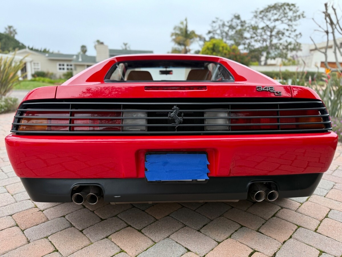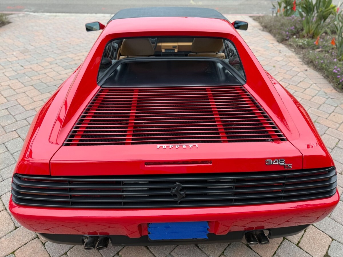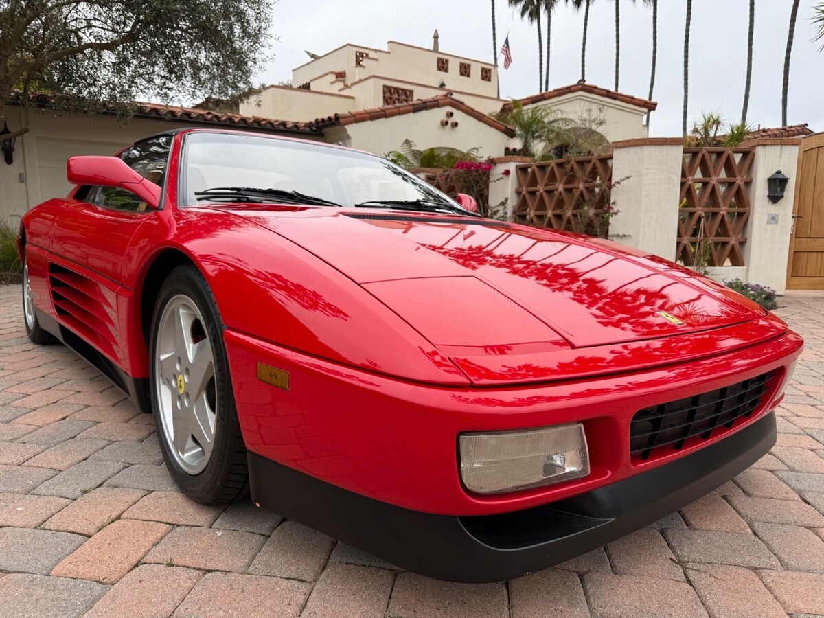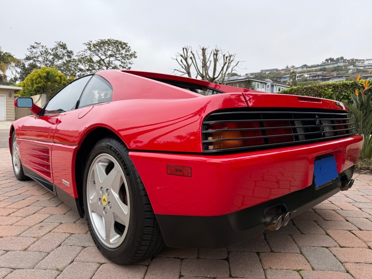Finest available, up-to-date Ferrari Dealer serviced 1990 Ferrari 348ts with clean CARFAX and 17,300 original miles.Includes Original:1. Key with folding head (1)2. Books3. Tools4. Service RecordsGaraged in La Jolla, CA 92037iPhone 858-454-9898Paint Meter Readings (mil):Front Trunk: 5Engine Cover: 5Left Front Fender: 4.5Left Door: 5Left Rear Fender: 5Right Front Fender: 5Right Door: 5.5Right Rear Fender: 4.5Ferrari Dealer Service07/30/24 - 03/20/25Total $53,392.41Job: New Radiators and New Air Conditioning Dryer Bottle with Pressure Switch03/20/25 17,247 miles1. Installed client supplied new brushed aluminum radiators from Superformance UK Limited $1,955.642. Installed client supplied new Air Conditioning Dryer Bottle with Pressure Switch from Red Bay Cars in Belgium $155.28Ferrari Dealer Installation $3,252,84Total $5,363.76Job: Cat Service and Rebuild Steering Rack01/03/25 17,238 miles1. New Cat Temp Probe and New Cat Temp ECU's (2) $3,811.012. New client supplied Oxygen Sensors (labor) $1,0003. Refurbish/Rebuild Steering Rack $4,987.96Shop Supplies $95Sales Tax $281Total $10,174.97Job: Major Service (348ts had not been driven for years)07/30/24 17,238 miles1. Transport to Ferrari Dealer $2,2202. New Battery $8263. Drain fuel tank, flush fuel lines, test fuel pumps, clean injectors, new fuel filters, new fuel, new fuel treatment $1,875.994. New Michelin Tires $1,3065. Four Wheel Alignment $349.956. New Wiper Blades $271.507. New Timing Belt Service with Annual Service, Resealed both Valve Covers and Cam Seals $10,699.398. New Cam Sensor $7559. New Crank Seals (2) $67510. New Oil Filter Housing Gasket, Flattened Sealing Surface of Oil Filter Housing $517.5111. New Spark Plugs and New Spark Plug Wiring $2,131.6112. New Coolant Hoses (unbolt subframe, lower engine and replace coolant hoses from engine to crossover pipes on firewall) $5,554.2213. New Bank 2 Exhaust Temp Sensor (Thermocouple) $1,067.3114. New Secondary Air Hoses (4) $742.7315. New Ground Cable $25016. New Battery Hold Down Bracket $110.1317. New Engine Mounts $6,468.6418. New Trunk and Engine Lid Shocks (4) $372.7619. Air Conditioning R134A Conversion $0.00 (included in annual service)20. Insulate Connectors of Rear Cooling Fans $0.00 (included in timing belt service)21. New Trunk Seal $324.81Shop Supplies $95Sales Tax $1,240.13Total $37,853.68ALL SALES FINAL.