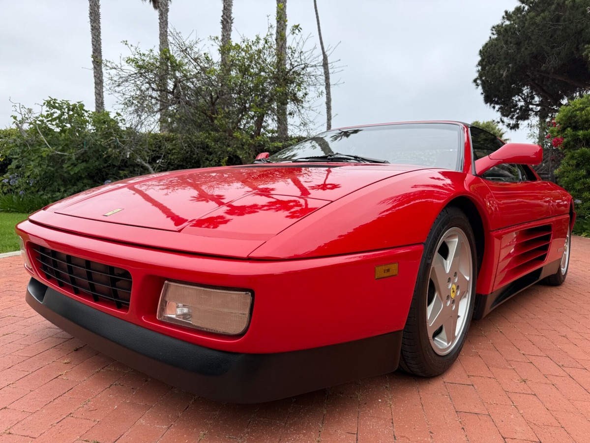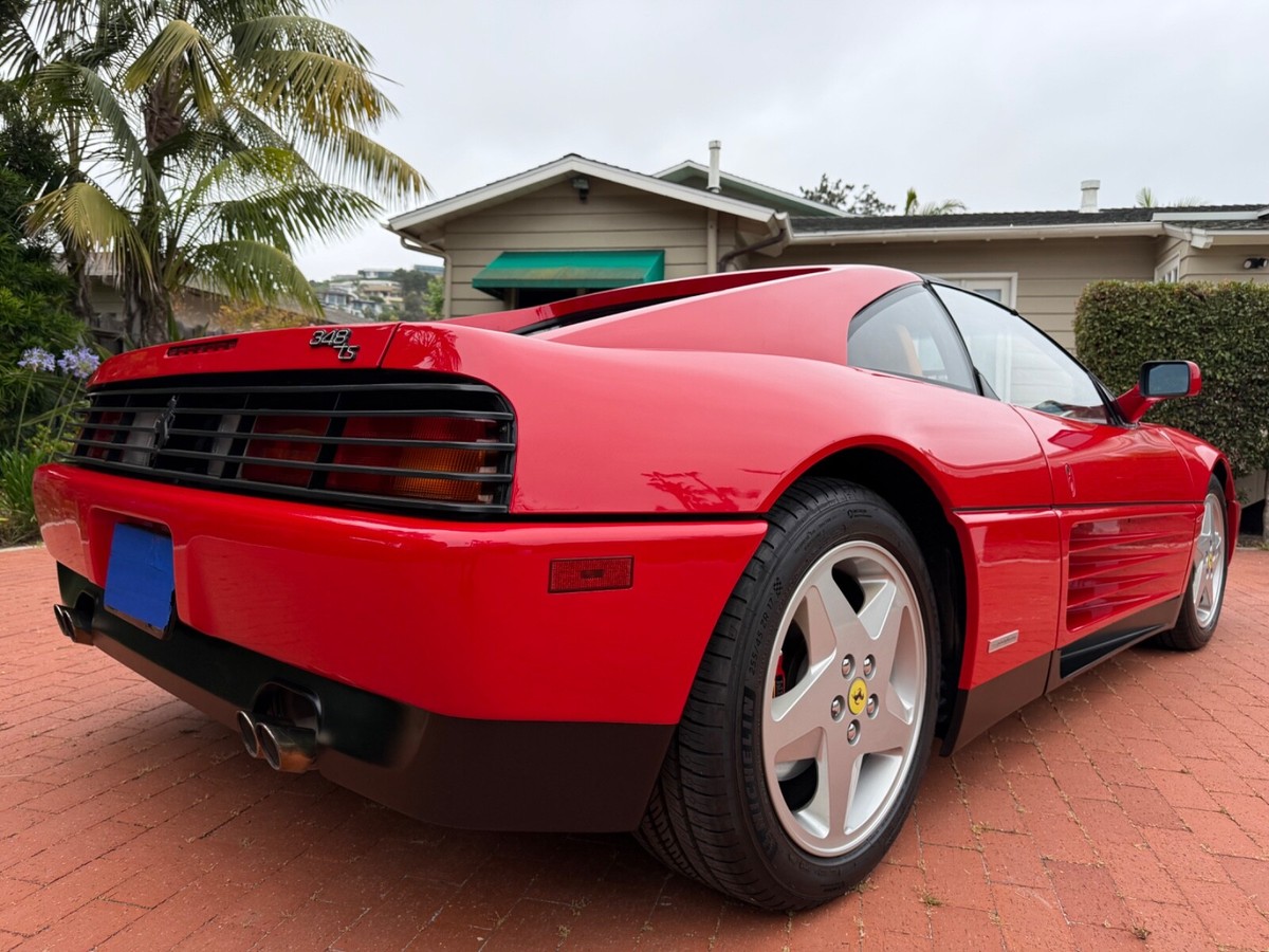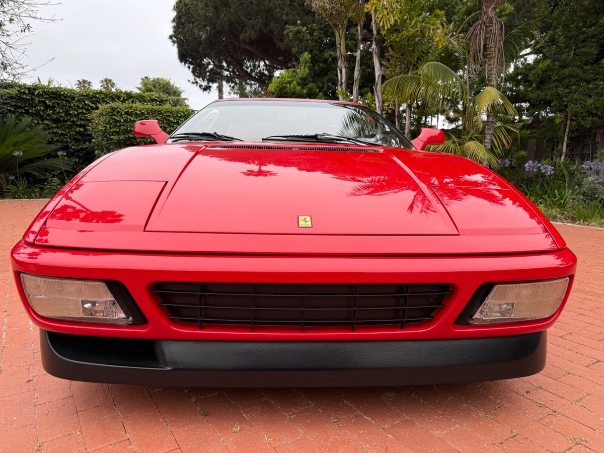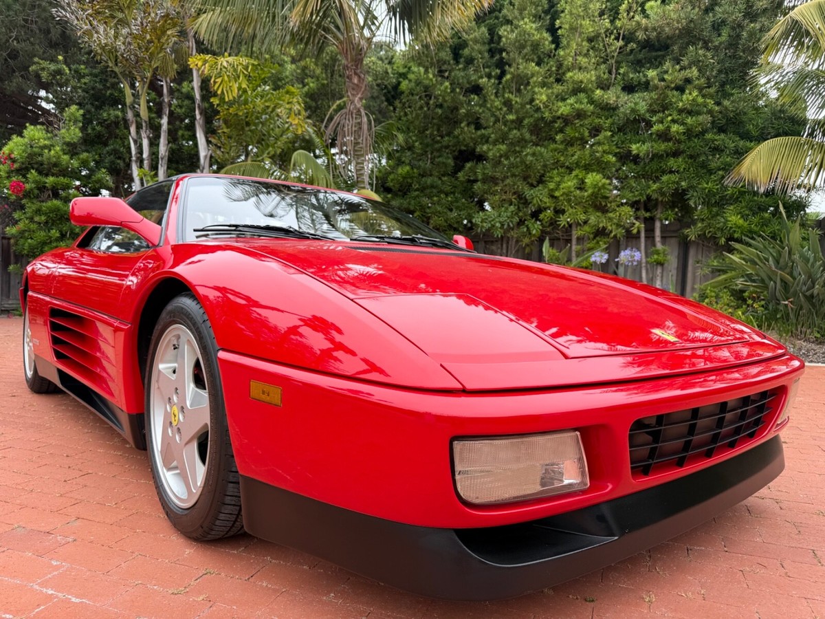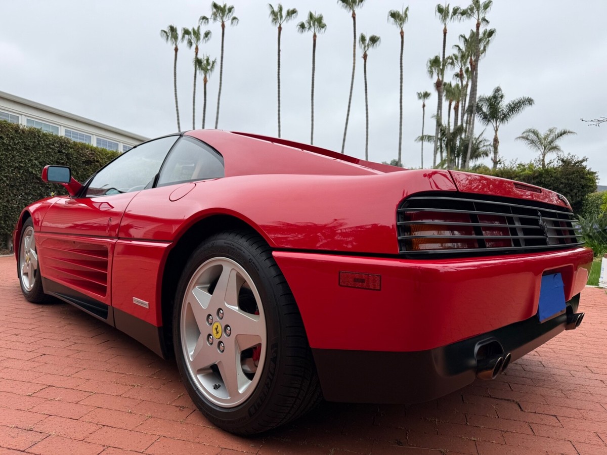 Finest available, up-to-date Ferrari Dealer serviced 1990 Ferrari 348ts with clean CARFAX and 17,350 original miles.Includes Original:1. Key with folding head (1)2. Books3. Tools4. Service RecordsGaraged in La Jolla, CA 92037iPhone 858-454-9898Paint Meter Readings (mil):Front Trunk: 5Engine Cover: 5Left Front Fender: 4.5Left Door: 5Left Rear Fender: 5Right Front Fender: 5Right Door: 5.5Right Rear Fender: 4.5Abbreviations for Below:PDR: Paintless Dent RemovalNOS: New Old StockNLA: No Longer AvailableECU: Electronic Control UnitDOA: Dead On ArrivalLH: Left Hand Driver SideRH: Right Hand Passenger SideR&R: Remove and ReinstallAdditional Recent Service:04/29/25 - 06/02/251. PDR:a. Highly seasoned PDR expert removed all dents and creases from all panels and headlight coversb. Using micro paint brush, touched up all panels, headlight covers, louvers, strakes and lower trim using Ferrari factory correct Rosso Corsa red and semi-gloss black paintResult: Absence of dents and scratches2. Power Windows Refurbishment/Renewal/Improvement:a: Power window metal cables and tubes soaked, stripped of old and hardened original grease. Properly reassembled with new assembly greaseb. Replaced old and cracked extension guide tube with new red silicone extension guide tubec: Computer scanned, measured and templated old and brittle original white plastic glides and stops. Computer 3D printed new glides and stops in stronger high-viscosity polymer (superior to original)d. Realigned and reinforced original Bosch window motorse. Added and installed new Genuine Ferrari electric window boosters (2)Result: LH and RH windows now effortlessly and quickly glide up and down (faster than when new)3. Power Central Door Locks Repaired:a. Sourced and installed replacement Genuine Ferrari power door lock ECUb: Installed new Genuine Ferrari LH and RH power door lock actuators (2)Result: Power central door locking system works as originally designed via door key locks and interior center console buttons4. Refurbished/Renewed Shoulder and Lap Seat Belts:a. R&R seat belts. Sent out shoulder and lap belts to specialist, who replaced seat belt material, reinstalled sewn-on tags (on correct side in original locations), replaced springs and force stopsResult: Seat belts now hold tension and fully retract when not in use5. New Genuine Ferrari Glove Box Gas Strut:Result: Glove box stays propped-up when open and closes smoothly6. New Alpine Audio System:a. Removed existing DOA Sony CD radio, old deteriorated Nakamichi speakers (4); and all related non-stock wiringb. Repaired damaged original Ferrari factory antenna wire lead inside center consolec. Installed NOS NLA Alpine CDA-9835 CD-radio with new adapter for Bluetooth and telephone microphoned. Installed new Alpine S2-S50 5.25" coaxial speakers in original Ferrari factory door locations with custom fabricated lightweight aluminum bracket mounts to optimize speaker location for unimpaired crystal-clear audio/sound/tone through original door-card carpete. Sourced and installed replacement Genuine Ferrari LH and RH rear shelf black leather-over-fiberglass end trim pieces (previous stereo install cut/modified original rear shelf end trims to accommodate non-stock location rear speakers)Result: New Alpine audio system in Ferrari factory correct locations; and restoration of black leather rearshelf with Genuine Ferrari trim parts7. Details/etc:a. New Genuine Ferrari RH passenger washer nozzle (existing RH nozzle had broken clip)b. New Genuine Ferrari Brembo bleed nipple rubber caps (4) (originals were either missing or brittle from age)c. New Genuine Ferrari Injection System and Fuel Pump Bosch 30a relays (4) (originals intermittent and replaced due to age)d. New Optima RedTop 34R (CCA 800 CA 1000)Result: Replaced items due to their ageFerrari Dealer Service07/30/24 - 03/20/25Total $53,392.41Job: New Radiators and New Air Conditioning Dryer Bottle with Pressure Switch03/20/25 17,247 miles1. Installed client supplied new brushed aluminum radiators from Superformance UK Limited $1,955.642. Installed client supplied new Air Conditioning Dryer Bottle with Pressure Switch from Red Bay Cars in Belgium $155.28Ferrari Dealer Installation $3,252,84Total $5,363.76Job: Cat Service and Rebuild Steering Rack01/03/25 17,238 miles1. New Cat Temp Probe and New Cat Temp ECU's (2) $3,811.012. New client supplied Oxygen Sensors (labor) $1,0003. Refurbish/Rebuild Steering Rack $4,987.96Shop Supplies $95Sales Tax $281Total $10,174.97Job: Major Service (348ts had not been driven for years)07/30/24 17,238 miles1. Transport to Ferrari Dealer $2,2202. New Battery $8263. Drain fuel tank, flush fuel lines, test fuel pumps, clean injectors, new fuel filters, new fuel, new fuel treatment $1,875.994. New Michelin Tires $1,3065. Four Wheel Alignment $349.956. New Wiper Blades $271.507. New Timing Belt Service with Annual Service, Resealed both Valve Covers and Cam Seals $10,699.398. New Cam Sensor $7559. New Crank Seals (2) $67510. New Oil Filter Housing Gasket, Flattened Sealing Surface of Oil Filter Housing $517.5111. New Spark Plugs and New Spark Plug Wiring $2,131.6112. New Coolant Hoses (unbolt subframe, lower engine and replace coolant hoses from engine to crossover pipes on firewall) $5,554.2213. New Bank 2 Exhaust Temp Sensor (Thermocouple) $1,067.3114. New Secondary Air Hoses (4) $742.7315. New Ground Cable $25016. New Battery Hold Down Bracket $110.1317. New Engine Mounts $6,468.6418. New Trunk and Engine Lid Shocks (4) $372.7619. Air Conditioning R134A Conversion $0.00 (included in annual service)20. Insulate Connectors of Rear Cooling Fans $0.00 (included in timing belt service)21. New Trunk Seal $324.81Shop Supplies $95Sales Tax $1,240.13Total $37,853.68Easily the finest thoroughly up-to-date serviced Ferrari 348 available.ALL SALES FINAL.