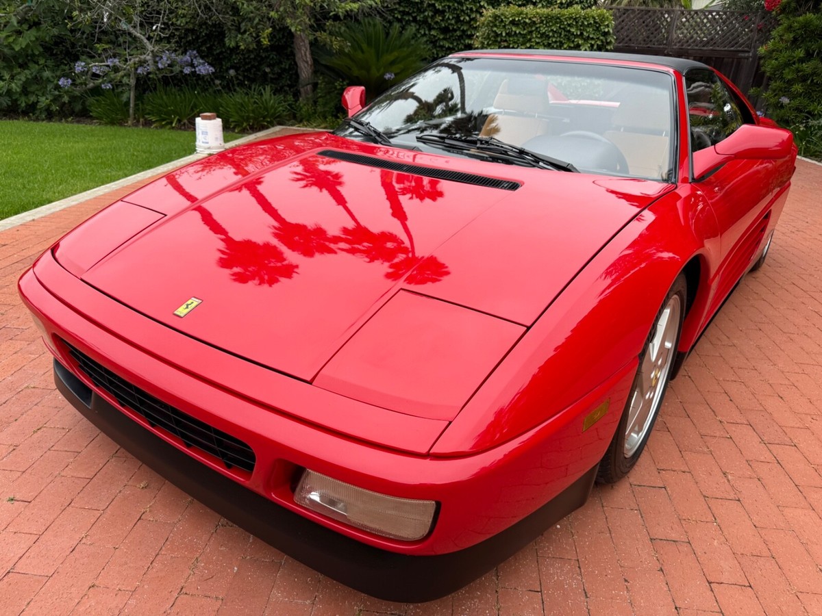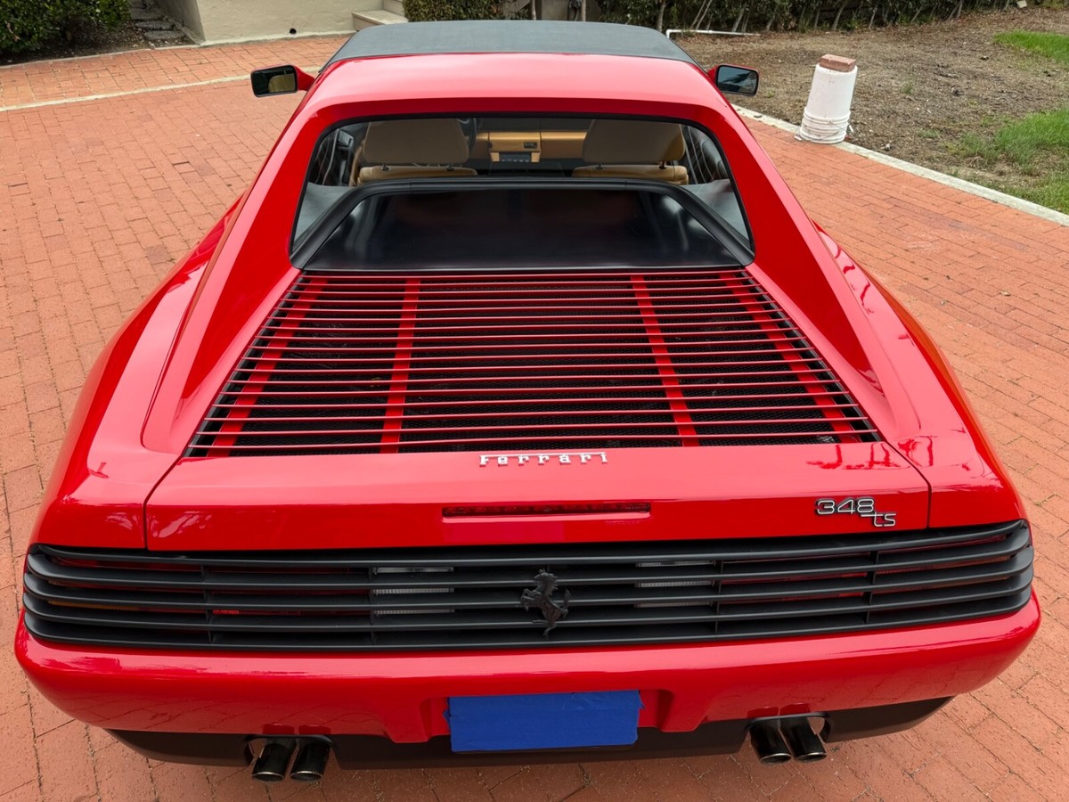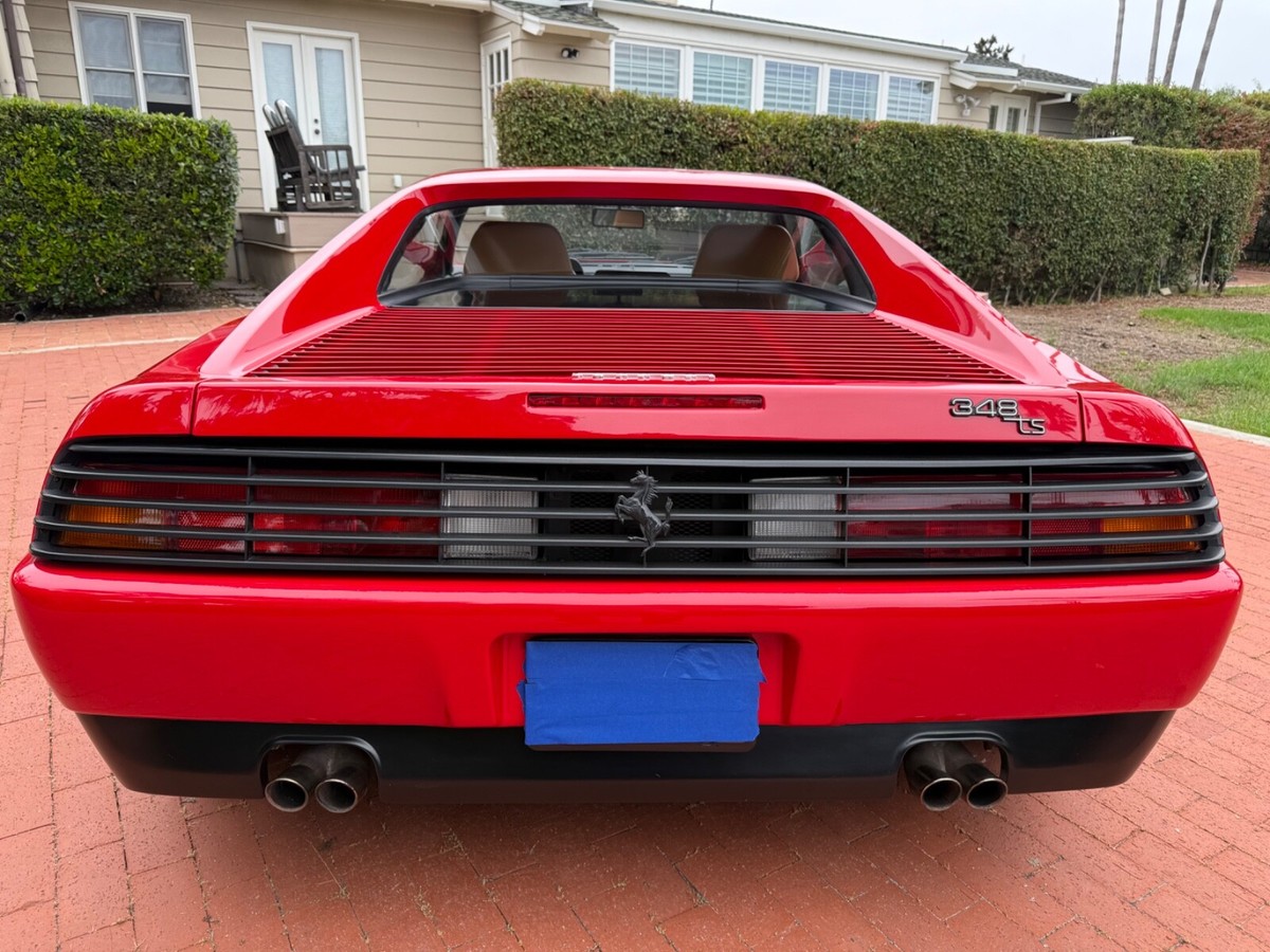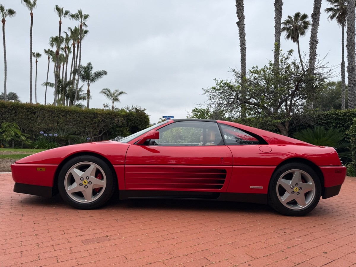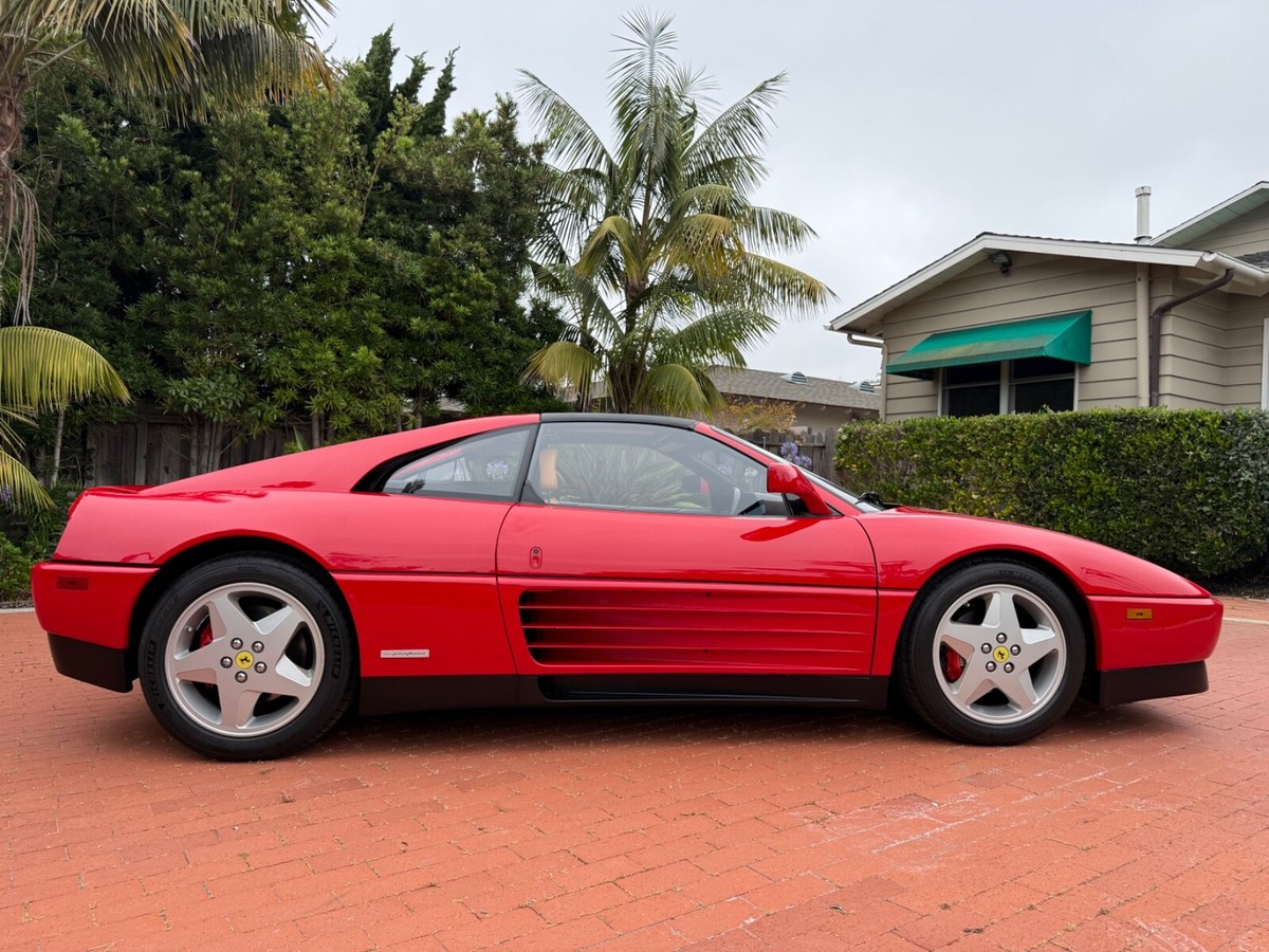 Finest available, up-to-date Ferrari Dealer serviced 1990 Ferrari 348ts with clean CARFAX and 17,350 original miles.Includes Original:1. Key with folding head (1)2. Books3. Tools4. Service RecordsGaraged in La Jolla, CA 92037iPhone 858-454-9898Paint Meter Readings (mil):Front Trunk: 5Engine Cover: 5Left Front Fender: 4.5Left Door: 5Left Rear Fender: 5Right Front Fender: 5Right Door: 5.5Right Rear Fender: 4.5Abbreviations for Below:PDR: Paintless Dent RemovalNOS: New Old StockNLA: No Longer AvailableECU: Electronic Control UnitDOA: Dead On ArrivalLH: Left Hand Driver SideRH: Right Hand Passenger SideR&R: Remove and ReinstallAdditional Recent Service:04/29/25 - 06/02/251. PDR:a. Highly seasoned PDR expert removed all dents and creases from all panels and headlight coversb. Using micro paint brush, touched up all panels, headlight covers, louvers, strakes and lower trim using Ferrari factory correct Rosso Corsa red and semi-gloss black paintResult: Absence of dents and scratches2. Power Windows Refurbishment/Renewal/Improvement:a: Power window metal cables and tubes soaked, stripped of old and hardened original grease. Properly reassembled with new assembly greaseb. Replaced old and cracked extension guide tube with new red silicone extension guide tubec: Computer scanned, measured and templated old and brittle original white plastic glides and stops. Computer 3D printed new glides and stops in stronger high-viscosity polymer (superior to original)d. Realigned and reinforced original Bosch window motorse. Added and installed new Genuine Ferrari electric window boosters (2)Result: LH and RH windows now effortlessly and quickly glide up and down (faster than when new)3. Power Central Door Locks Repaired:a. Sourced and installed replacement Genuine Ferrari power door lock ECUb: Installed new Genuine Ferrari LH and RH power door lock actuators (2)Result: Power central door locking system works as originally designed via door key locks and interior center console buttons4. Refurbished/Renewed Shoulder and Lap Seat Belts:a. R&R seat belts. Sent out shoulder and lap belts to specialist, who replaced seat belt material, reinstalled sewn-on tags (on correct side in original locations), replaced springs and force stopsResult: Seat belts now hold tension and fully retract when not in use5. New Genuine Ferrari Glove Box Gas Strut:Result: Glove box stays propped-up when open and closes smoothly6. New Alpine Audio System:a. Removed existing DOA Sony CD radio, old deteriorated Nakamichi speakers (4); and all related non-stock wiringb. Repaired damaged original Ferrari factory antenna wire lead inside center consolec. Installed NOS NLA Alpine CDA-9835 CD-radio with new adapter for Bluetooth and telephone microphoned. Installed new Alpine S2-S50 5.25" coaxial speakers in original Ferrari factory door locations with custom fabricated lightweight aluminum bracket mounts to optimize speaker location for unimpaired crystal-clear audio/sound/tone through original door-card carpete. Sourced and installed replacement Genuine Ferrari LH and RH rear shelf black leather-over-fiberglass end trim pieces (previous stereo install cut/modified original rear shelf end trims to accommodate non-stock location rear speakers)Result: New Alpine audio system in Ferrari factory correct locations; and restoration of black leather rearshelf with Genuine Ferrari trim parts7. Details/etc:a. New Genuine Ferrari RH passenger washer nozzle (existing RH nozzle had broken clip)b. New Genuine Ferrari Brembo bleed nipple rubber caps (4) (originals were either missing or brittle from age)c. New Genuine Ferrari Injection System and Fuel Pump Bosch 30a relays (4) (originals intermittent and replaced due to age)d. New Optima RedTop 34R (CCA 800 CA 1000)Result: Replaced items due to their ageFerrari Dealer Service07/30/24 - 03/20/25Total $53,392.41Job: New Radiators and New Air Conditioning Dryer Bottle with Pressure Switch03/20/25 17,247 miles1. Installed client supplied new brushed aluminum radiators from Superformance UK Limited $1,955.642. Installed client supplied new Air Conditioning Dryer Bottle with Pressure Switch from Red Bay Cars in Belgium $155.28Ferrari Dealer Installation $3,252,84Total $5,363.76Job: Cat Service and Rebuild Steering Rack01/03/25 17,238 miles1. New Cat Temp Probe and New Cat Temp ECU's (2) $3,811.012. New client supplied Oxygen Sensors (labor) $1,0003. Refurbish/Rebuild Steering Rack $4,987.96Shop Supplies $95Sales Tax $281Total $10,174.97Job: Major Service (348ts had not been driven for years)07/30/24 17,238 miles1. Transport to Ferrari Dealer $2,2202. New Battery $8263. Drain fuel tank, flush fuel lines, test fuel pumps, clean injectors, new fuel filters, new fuel, new fuel treatment $1,875.994. New Michelin Tires $1,3065. Four Wheel Alignment $349.956. New Wiper Blades $271.507. New Timing Belt Service with Annual Service, Resealed both Valve Covers and Cam Seals $10,699.398. New Cam Sensor $7559. New Crank Seals (2) $67510. New Oil Filter Housing Gasket, Flattened Sealing Surface of Oil Filter Housing $517.5111. New Spark Plugs and New Spark Plug Wiring $2,131.6112. New Coolant Hoses (unbolt subframe, lower engine and replace coolant hoses from engine to crossover pipes on firewall) $5,554.2213. New Bank 2 Exhaust Temp Sensor (Thermocouple) $1,067.3114. New Secondary Air Hoses (4) $742.7315. New Ground Cable $25016. New Battery Hold Down Bracket $110.1317. New Engine Mounts $6,468.6418. New Trunk and Engine Lid Shocks (4) $372.7619. Air Conditioning R134A Conversion $0.00 (included in annual service)20. Insulate Connectors of Rear Cooling Fans $0.00 (included in timing belt service)21. New Trunk Seal $324.81Shop Supplies $95Sales Tax $1,240.13Total $37,853.68Easily the finest thoroughly up-to-date serviced Ferrari 348 available.ALL SALES FINAL.