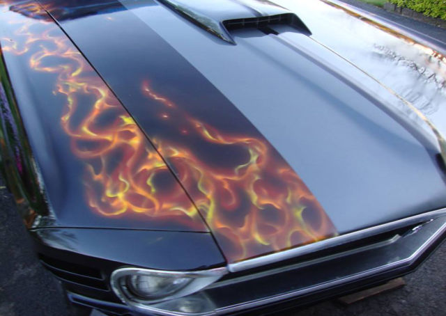 Newly painted Black Metallic Base under custom 3D flames