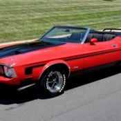 '73 Mustang Mach 1 Convertible, Recent rotisserie restoration! The bottom is just as beautiful as the top (look under this car!) Rebuilt 351cid HI-PO V-8 with dual quads (2X4bbl carburetors) cobra engine dress up pkg, est@400hp! Rebuilt Heavy duty C4 automatic trans, Original factory HD Ford 9" rear differential, Mirror finish factory Bright red paint black stripes-black hood treatment & callouts, Black bucket seat interior w/factory console, Power black convertible top w/ matching boot, Full factory gauges incl. 120mph Speedo & clock, Optional Factory power disc brakes, Optional fast ratio power steering, Correct 15" Magnum 500's w/Goodyear Eagles, Front chin spoiler & rear wing, Great sounding dual exhaust, All new chrome & polished stainless trim, Last year for the V-8 Mach 1, Professionally reproduced and restored, this car looks, performs, runs and sounds waaaay better than stock with about a dozen trophies in the trunk to prove it! Show or drive this reliable, show winning, iconic, classic Mustang.Vehicle Details: