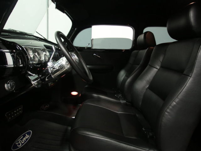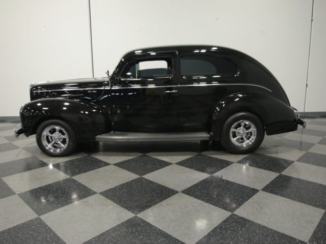 If you appreciate driving your cars, then this 1940 Ford tudor will definitely appeal to you. Nothing radical, mind you, just great execution, a well-sorted drivetrain, and timeless good looks.There are no radical modifications on the body, no chopped roof, no shaved handles, and all the original Ford trim remains in place, albeit restored to new condition. The 1940 Ford is incredibly popular with restorers and rodders alike, thanks to its combination of iconic styling and practical, big car comfort. This one was clearly built to drive, but like all hand-built cars, the attention to detail and level of quality is beyond what you'd get from some mass-produced transportation appliance. The beautiful black paint is bereft of flames or graphics, a refreshing change from the usual stuff, and the Ford's trim ensures that it's enough to grab onlookers' attention. It's 100% original factory steel, no fiberglass, so there's a solid feeling on the road and the doors open and close like the proverbial bank vaults. The tudor fastback body is sleek and ideally lends itself to a lowered and raked stance without losing any of its back-seat practicality. Chrome and stainless trim has been fully restored rather than painted or removed altogether, and even the rubber-covered running boards survived the conversion intact. The only modification that stands out is the Vee'd windshield. There's a lot to love here, especially if you're a Ford fan.Inside, there's a custom black interior that does a great job of making the interior feel modern and up-to-date. The original bench seat was jettisoned and replaced by a pair of comfortable buckets, matching door panels with neat courtesy lights, and you'll note the original door levers were retained while power window switches were neatly tucked in up front. A tilt steering column is topped by a banjo-style wheel which has V8 emblems for a vintage vibe. Modern conveniences like air conditioning, heat, and a powerful AM/FM/CD entertainment system have all been beautifully integrated into the original dashboard, which also houses a full array of gauges from VDO. There's even a neat clock over in the glove box lid in front of the passenger, a definite throwback to the 1940s. There's plenty of stretch-out room in the fully finished back seat ant the trunk is nicely finished with full carpets and access panels to maximize storage capacityUnder the pointed hood you'll find a 350 cubic inch Chevy V8 built for both reliability and performance. Go easy on the throttle and it's happy to cruise, pulling down almost 20 MPG. But open all four barrels on the Edelbrock carburetor and it really wakes up, pulling this rounded cruiser deep into triple digits without a lot of drama. There's plenty of chrome and shiny stuff under the hood, so don't be afraid to open it up at shows. The chassis is well engineered, with a Camaro front clip with disc brakes and power steering, while out back, leaf springs locate the S10 pickup rear end, which is also fitted with discs. A TH400 3-speed automatic transmission handles the gear swaps and there's a mellow dual exhaust system that's smooth enough to drive all day. Shiny Torque Thrust wheels offer traditional looks and wear 195/65/15 front and 225/75/15 rear tires.There's a lot to like in this beautiful 1940 Ford. First, it's extremely well engineered and sorted, so you can drive it with confidence. The attention to detail with things like the gauges and interior fittings means that someone really cared about building this one right. For a car you can drive with confidence and show with pride, it'll be tough to find a better one. Call now!