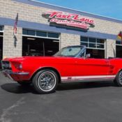 This 1967 Ford Mustang Coupe has a 302 C.I. Jasper Crate Engine w/ Electronic Fuel Injection, 3 Speed Automatic Transmission, Ford 8" Rear w/ 3.00:1 Ratio, Power Steering, Power Disc Brakes, Candy Apple Red Exterior, Correct Black Vinyl Interior, Center Console, Map Lights, Front & Rear Seat Belts, AM/FM/Cassette, Tilt Wheel, Padded Dash, Dual Mirrors w/ Remote, 15" Shelby Wheels, BF Goodrich Radial T/A Tires, MSD Ignition, Fog Lights, Hood Mounted Blinkers, Great Driving Mustang in the Most Desirable Color Combination!Vehicle Details: