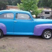 I included pictures showing a patch in the driver's floor (top and bottom photos), a spot over the passenger door where the person buffing it stayed in one spot too long (it's really not noticeable unless looking for it), a spot in the spare tire well, and a bubble in the paint on the drivers rear fender (it's been like this since I got it and hasn't gotten worse). It's missing one piece of interior trim and the driver's side interior door handle is from a 39 deluxe, not a standard.