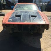 v8 stick carNo engine or transOriginal 9 inch intact, ratio unknownCar needs floor pans, inner and outer rockers, floor braces, gas tank.Frame is solid.Front and center door posts solid.Trunk has a few small rusted areas, nothing major.Spare tire well solid.Have clock and radio delete platesPair of very rare front fiberglass fenders3 hoodsComplete back seat - excellent shape.No front seat or head light buckets.Radiator support very usableAll glass present, drivers door glass crackedBody is real straight, except for dent in passenger door.
