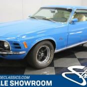 The mid-seventies Mustangs are gaining in popularity. This '72 is looking long and lean in a great looking color that grabs your attention sitting on a sweet set of Shelby Elanor style wheels. Check it out. Technically still a first-generation Mustang but with the restyle for the early 70s cars that was pretty dramatically wider and longer in order to make room for more and bigger engine options. The vinyl roof on this one looks great with... the Teal colored paint that adds to the long and low effect even further. A tan pinstripe highlights the upper body line and side molding runs down the beltline. The font of the hood curves down toward the iconic grill with the galloping Pony in the center. It is trimmed in chrome with a sharp looking chrome bumper underlining it. The front fenders still have the sharp upper edge that arches over and down to the grill along with a fenderwell lip that flares out and is trimmed in chrome. The sail panel flows gracefully onto the trunk and the back end is highlighted with another pinstripe and has those iconic triple taillights underlined by another chrome bumper. Open the door and you will be greeted by a nice two-tone door panel that sets the theme for the interior. It is Tan vinyl with a brown wood grained insert edged by thin chrome piping. Have a seat in the high-backed bucket with tan cloth insert and brown vinyl trim and reach out for the beefy three-spoke steering wheel that is comfortable and offers a good grip for spirited driving. A T-handle shifter for the automatic transmission is in the center console and falls naturally to hand. The dash is all original and stock with a center console that is trimmed in wood grain. There is a plaque indicating this is the Grande model with a galloping Mustang over an AM/FM/Cassette player. The ventilation controls are just below that which include those for the A/C system to keep you cool on hot summer days. A center console provides some nice storage and a comfortable armrest while cruising. Pop the hood and you will find a 351 Cleveland engine nestled down in a neat and clean engine bay that appears all stock and original with signs of good regular maintenance. This car was built and delivered with a 351 new, as is noted on the Marti report that was run on this car, and it's believed to be the original motor. It has the original blue air filter assembly with a sticker indicating the 351 2-barrel carburetor which is still the original Motorcraft 2-barrel carb, and appears to have been rebuilt recently along with the factory air conditioning compressor. There are newer belts and hoses throughout. Power flows back through a 3-speed automatic to the rear end mounted on leaf springs, and the front-end rides on coils springs with ventilated front disc brakes to assure good braking ability. The rubber meets the road thorough 245/45ZR17s all around mounted on those sweet looking Shelby Elinor wheels. This is a super sharp looking Mustang with a 351 Cleveland riding on some super trick wheels. Come on down and check it out. You may decide to become one of the growing number of mid-seventies Mustang fans.