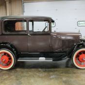 The upholstery on the bench seat and door panels is dark brown and in good condition.The rumble seat is in the same good condition as the interior. The steering wheel is original with spark advance lever and throttle/idle lever attached to the column.